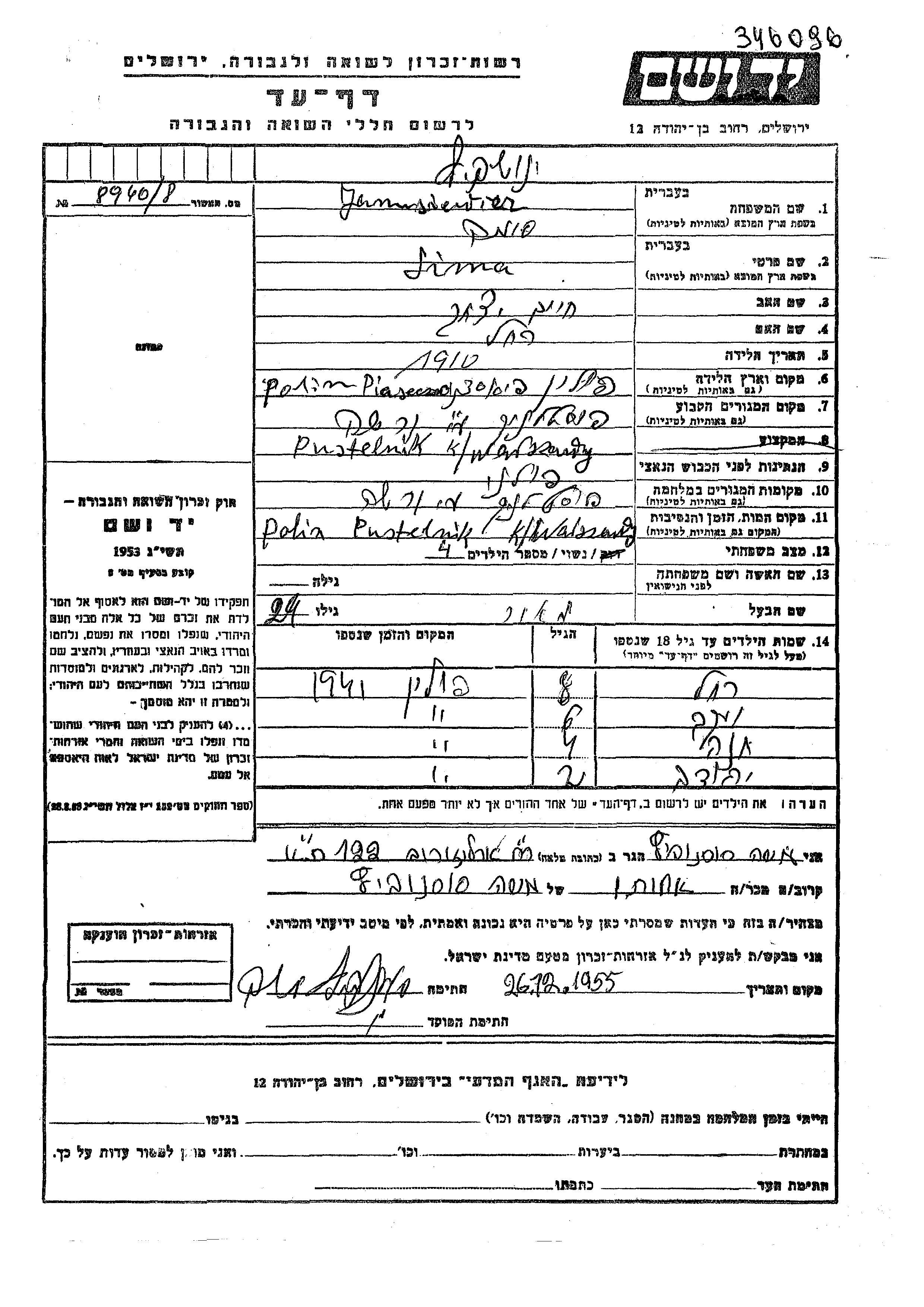 Yad Vashem - Pages of Testimony Names Memorial Collection