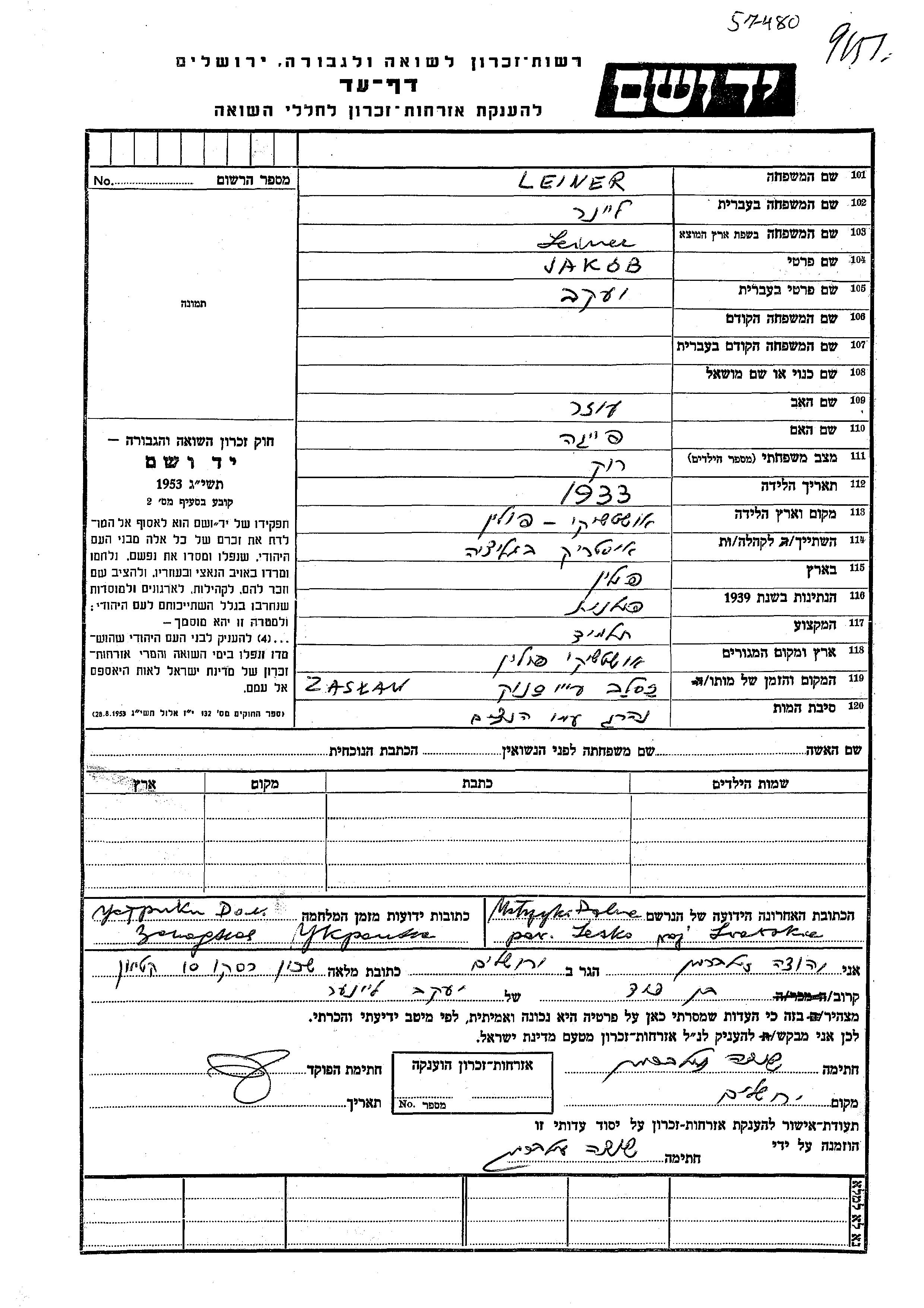 Leiner Jakob 1933 Ustrik, Poland Page of Testimony