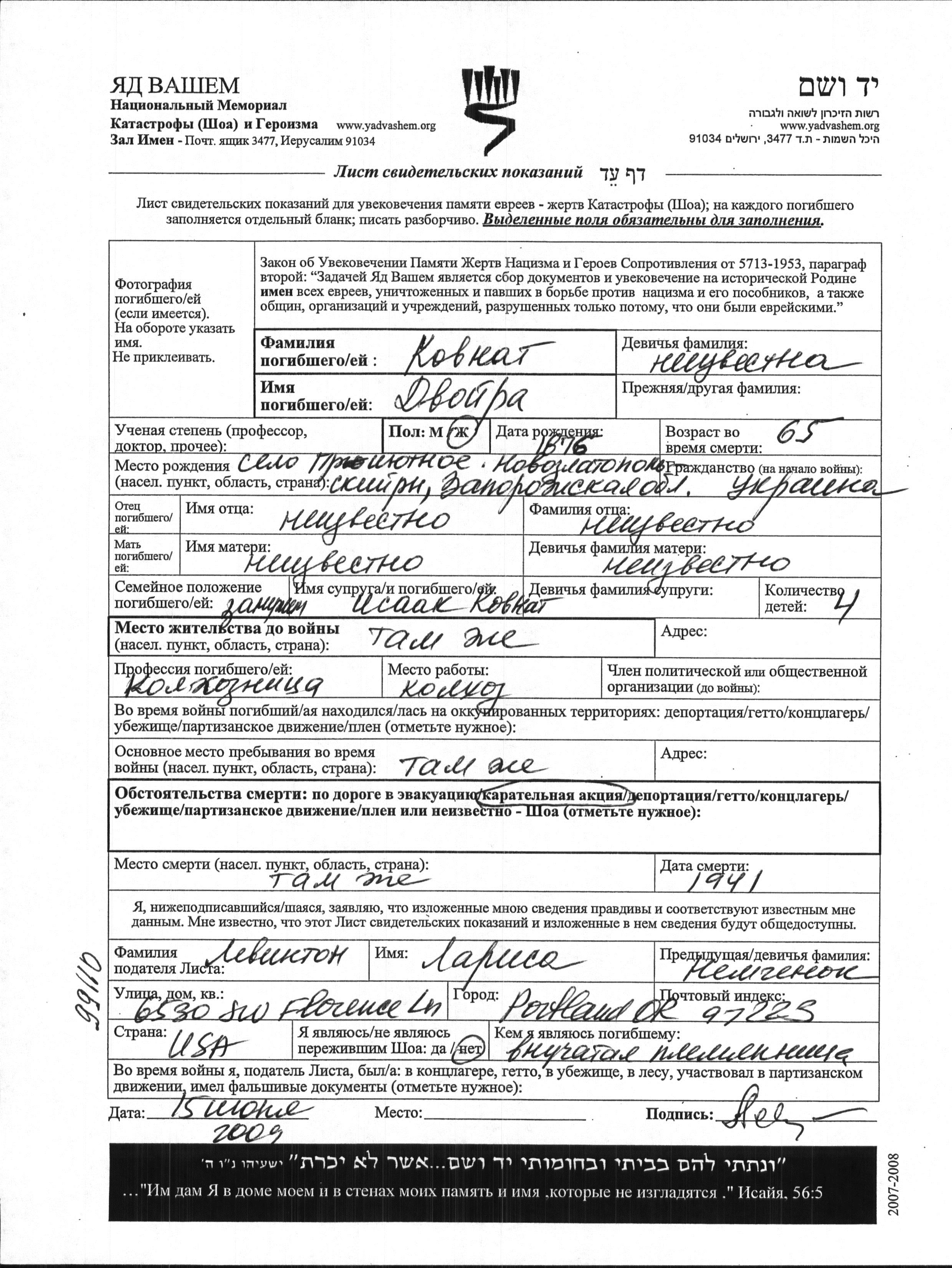 Yad Vashem - Pages of Testimony Names Memorial Collection