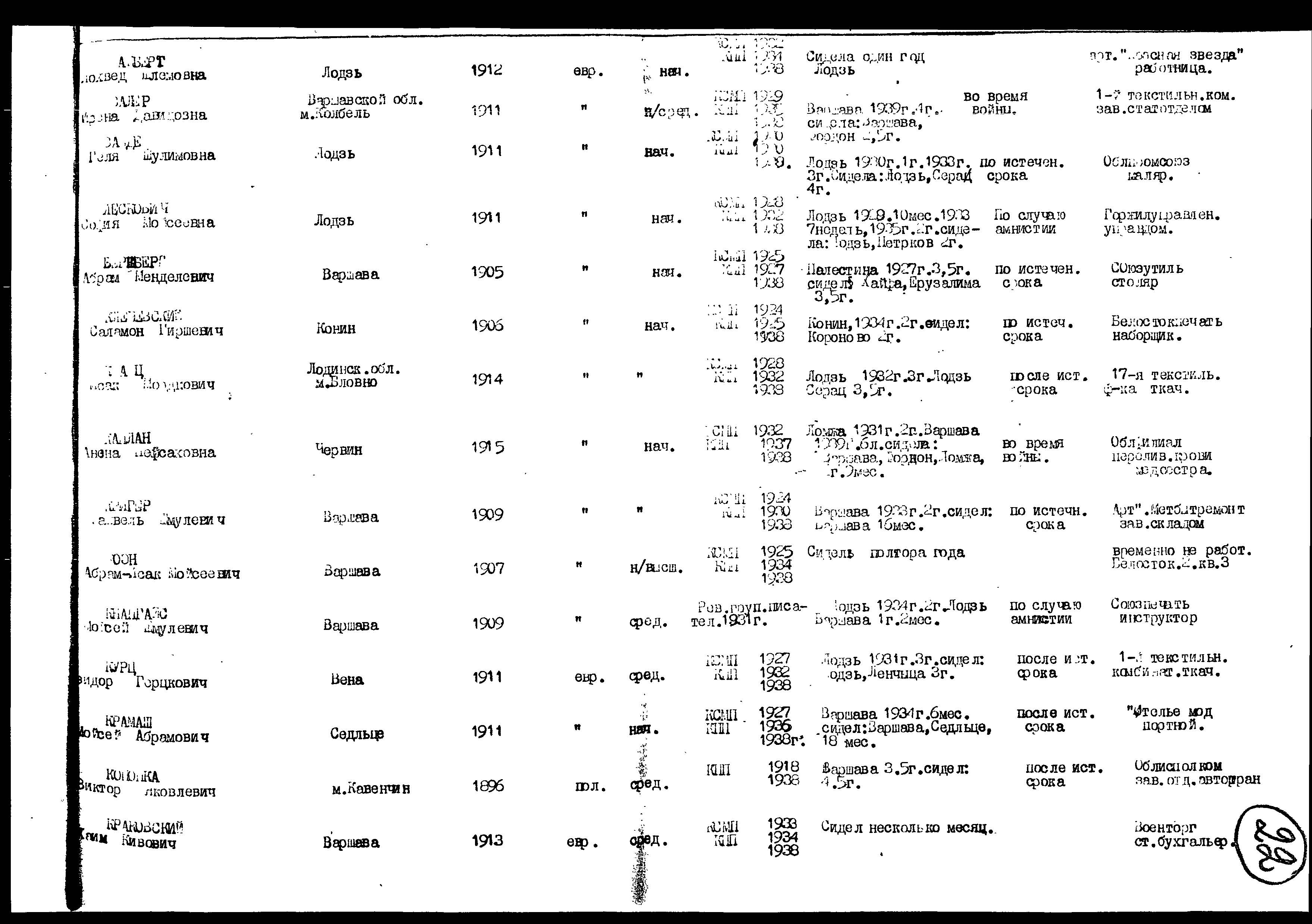 Zaler Irena 1911 Belostok, Poland List of persecuted persons