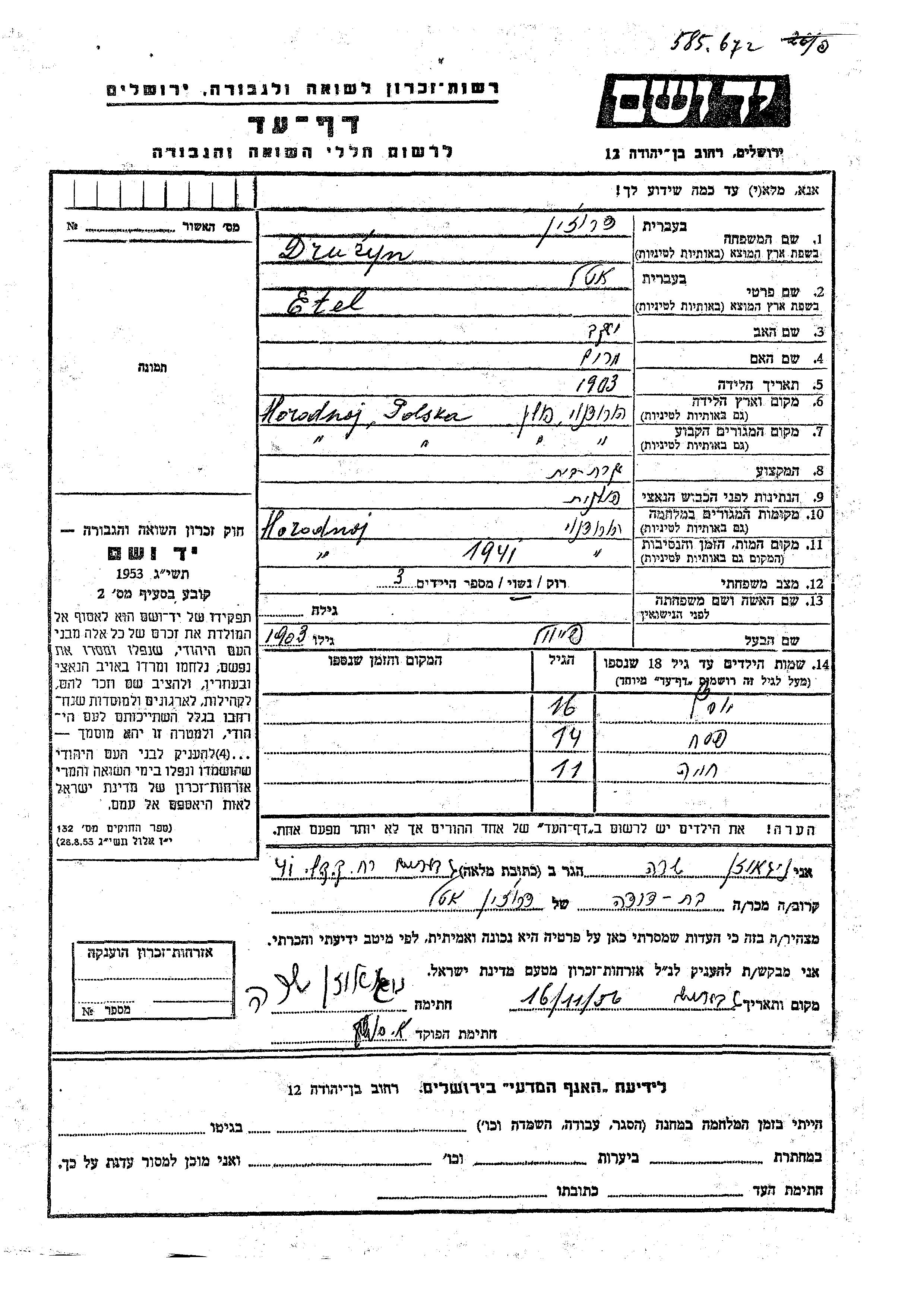 Dryzun Druzin Khaia Horodno, Poland Page of Testimony