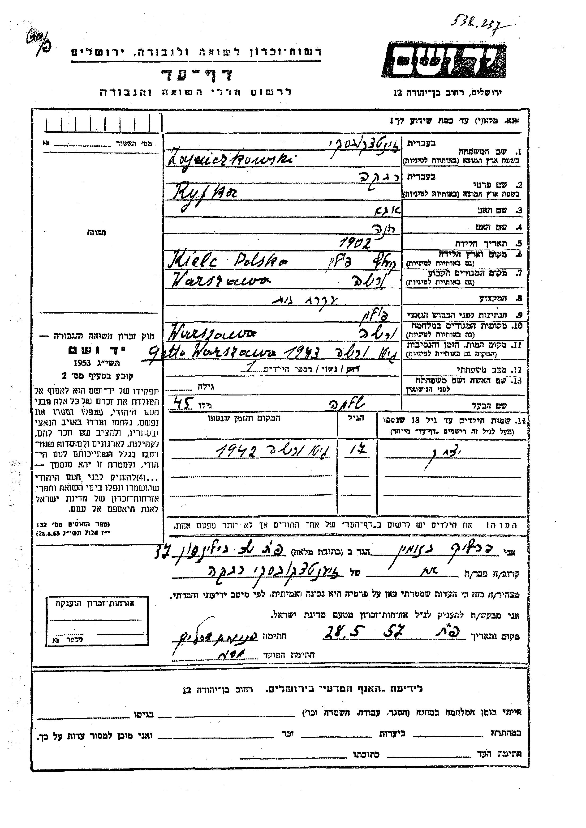 Yitzkhak Zajenczkowski was born to Shlomo and Ryfka. He was child. Prior to WWII he lived in Warszawa, Poland. During the war he was in Warszawa, Poland. Yitzkhak was murdered in the Shoah.