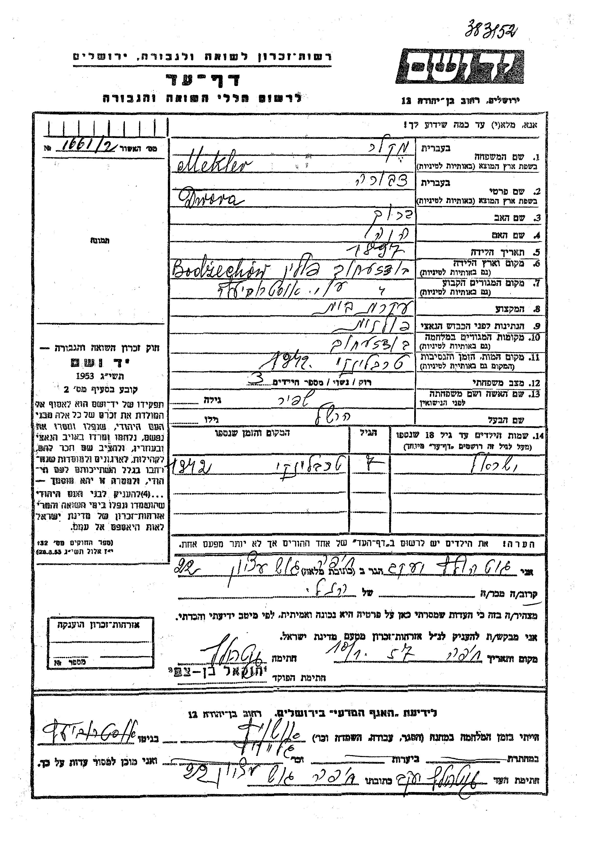 Yisrael Makler was born to Hershel and Dwora nee Shafir. He was child. Prior to WWII he lived in Bodzechow, Poland. During the war he was in Bodzechow, Poland. Yisrael was murdered in the Shoah.