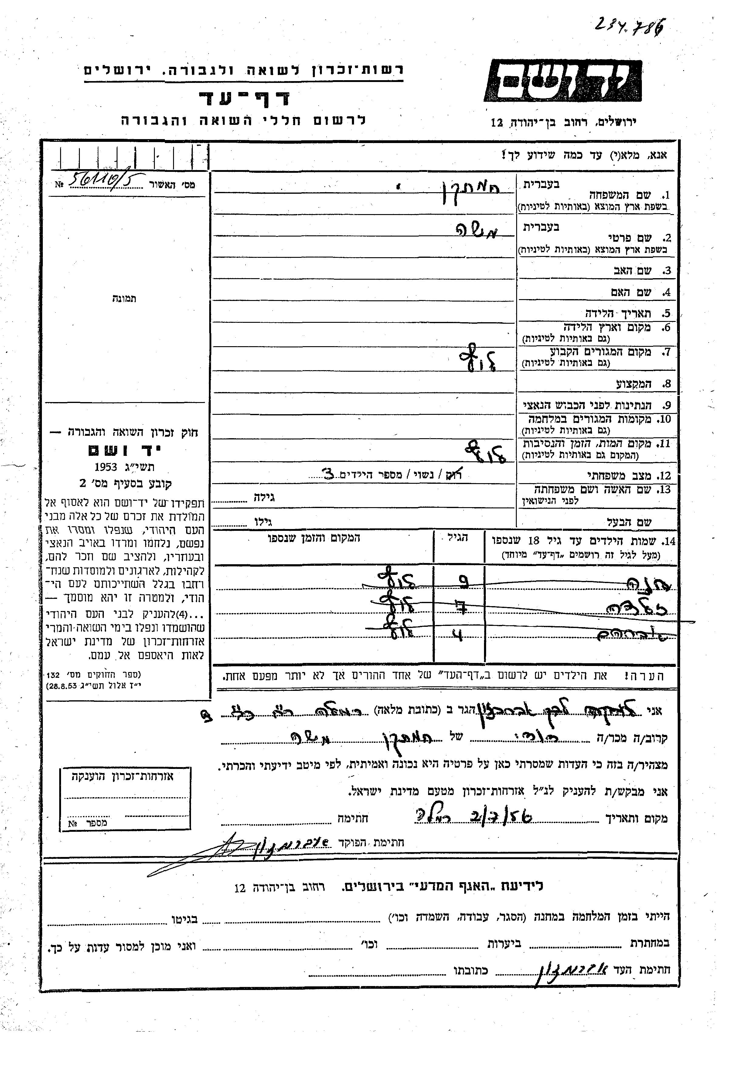 Yad Vashem - Pages of Testimony Names Memorial Collection