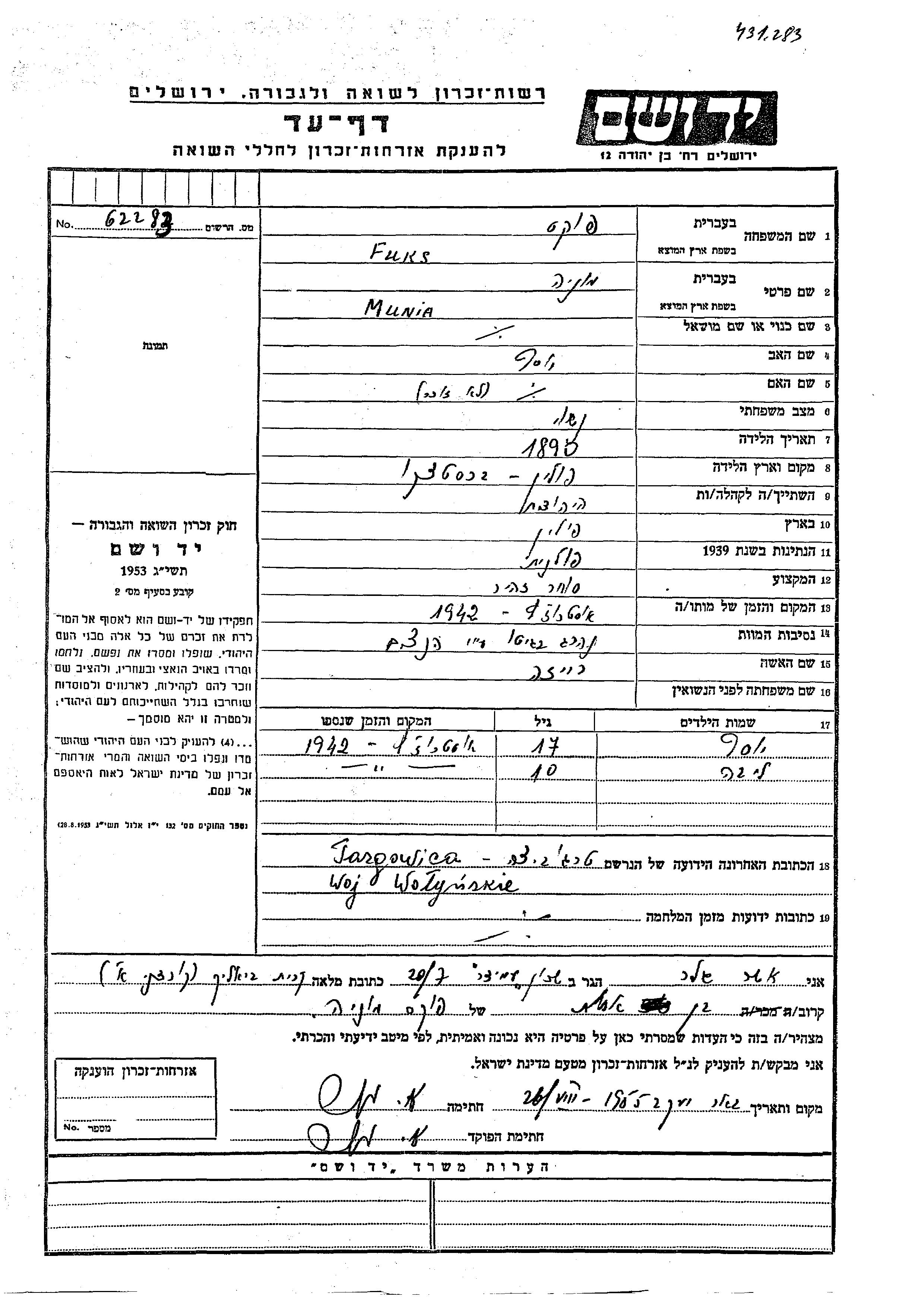 Yad Vashem - Pages of Testimony Names Memorial Collection