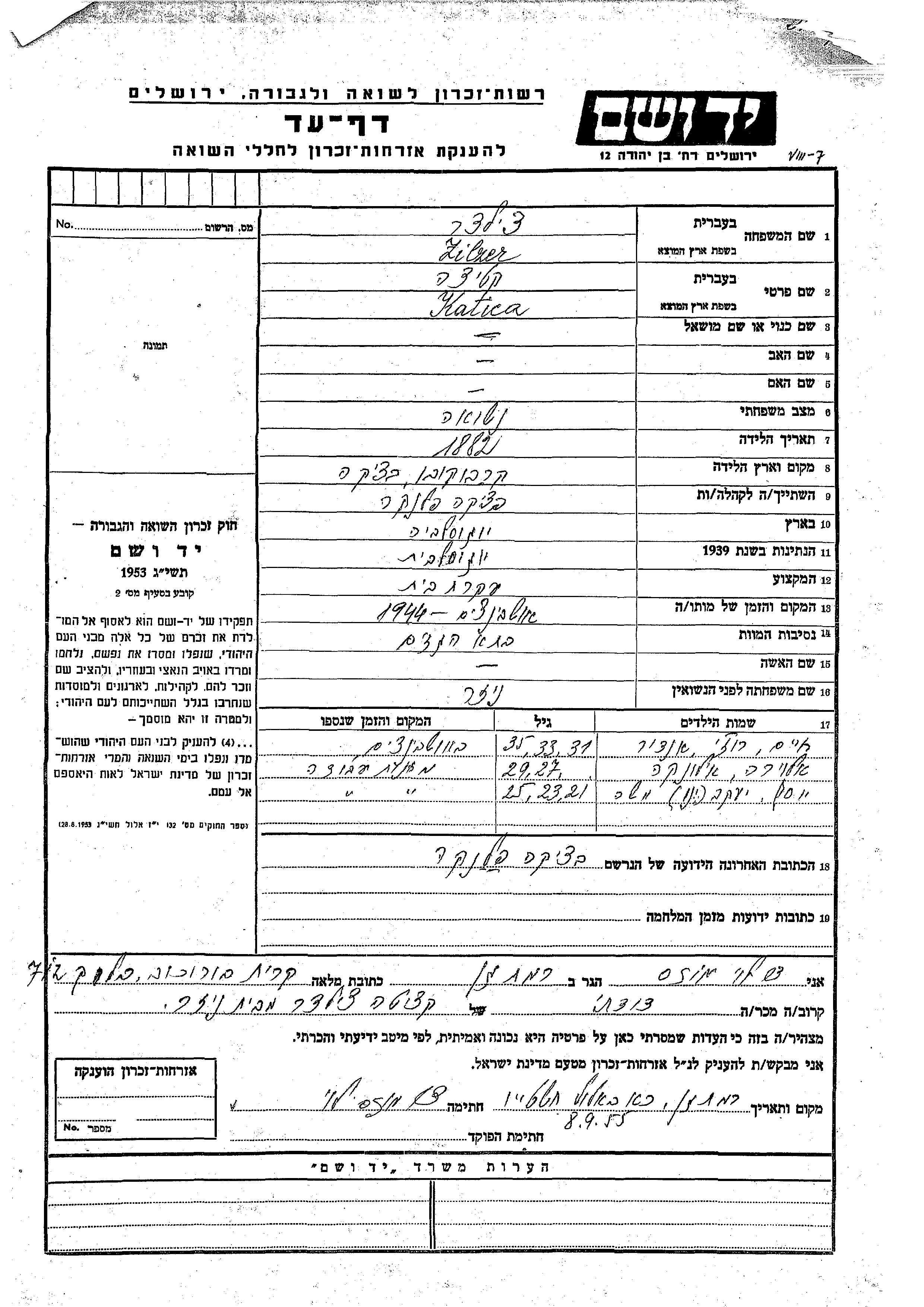 Rozi Zilzer Tziltzer was born to Katica nee Neizer. Prior to WWII she lived in Backa Palanka, Yugoslavia. During the war she was in Backa Palanka, Yugoslavia. Rozi was murdered in the Shoah.