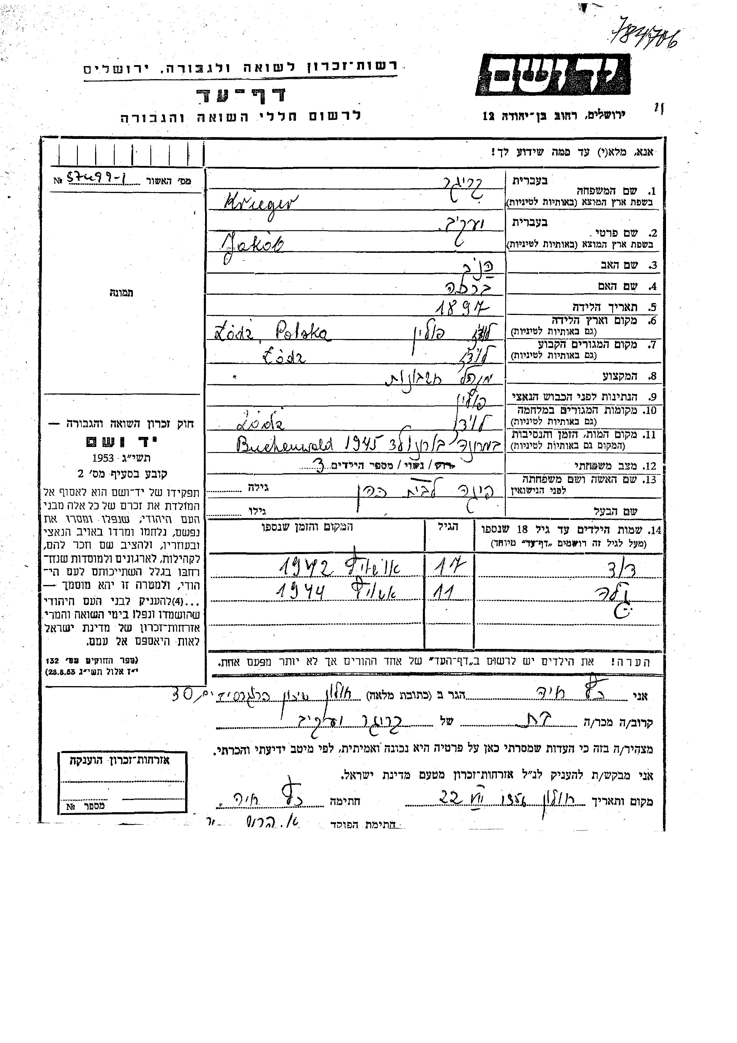 Yad Vashem - Pages of Testimony Names Memorial Collection