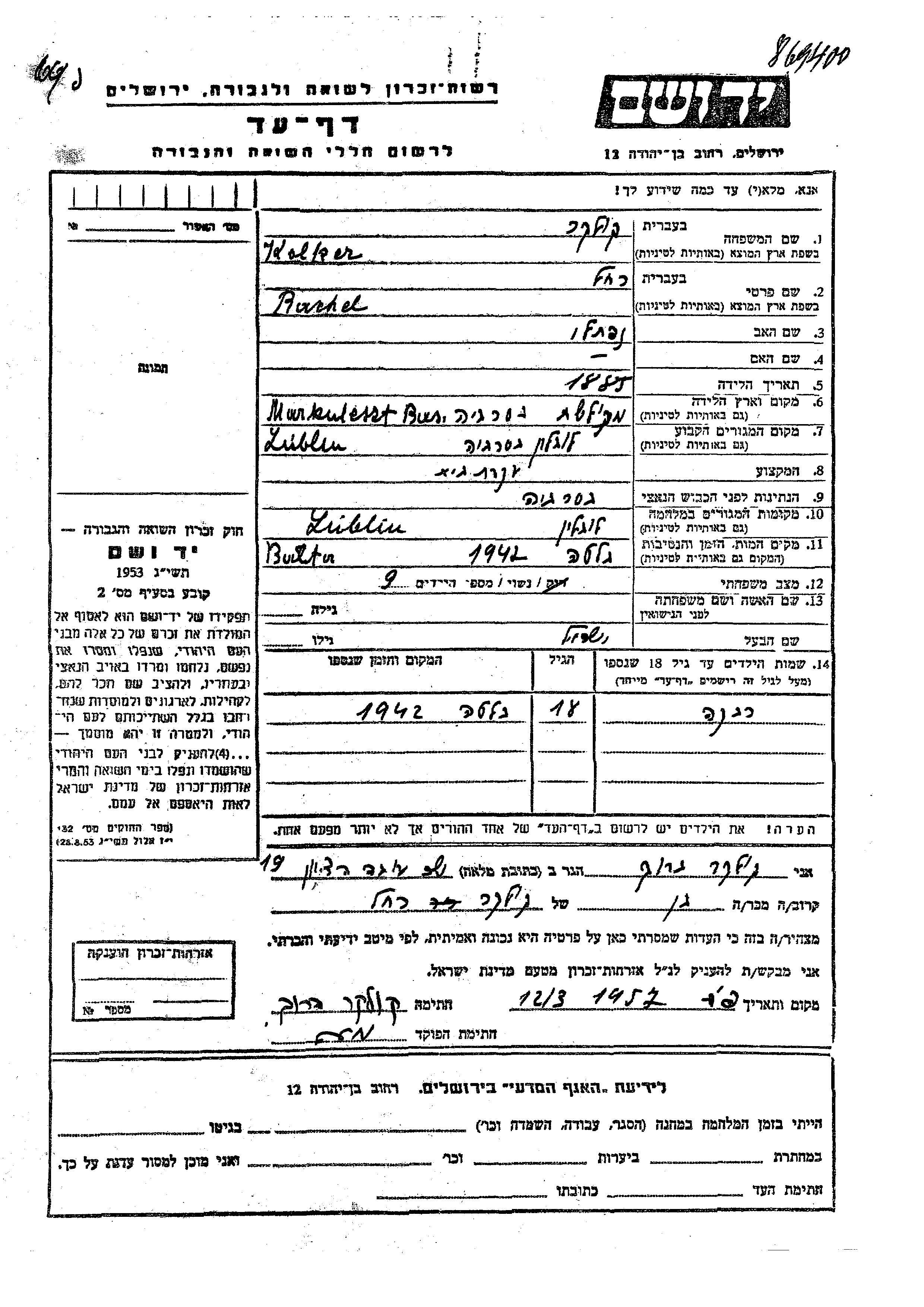 Rivka Kolker was born to Yisrael and Rachel. She was child. Prior to WWII she lived in Lublin Bessarabia, Romania. During the war she was in Lublin Bessarabia, Romania. Rivka was murdered in the Shoah.