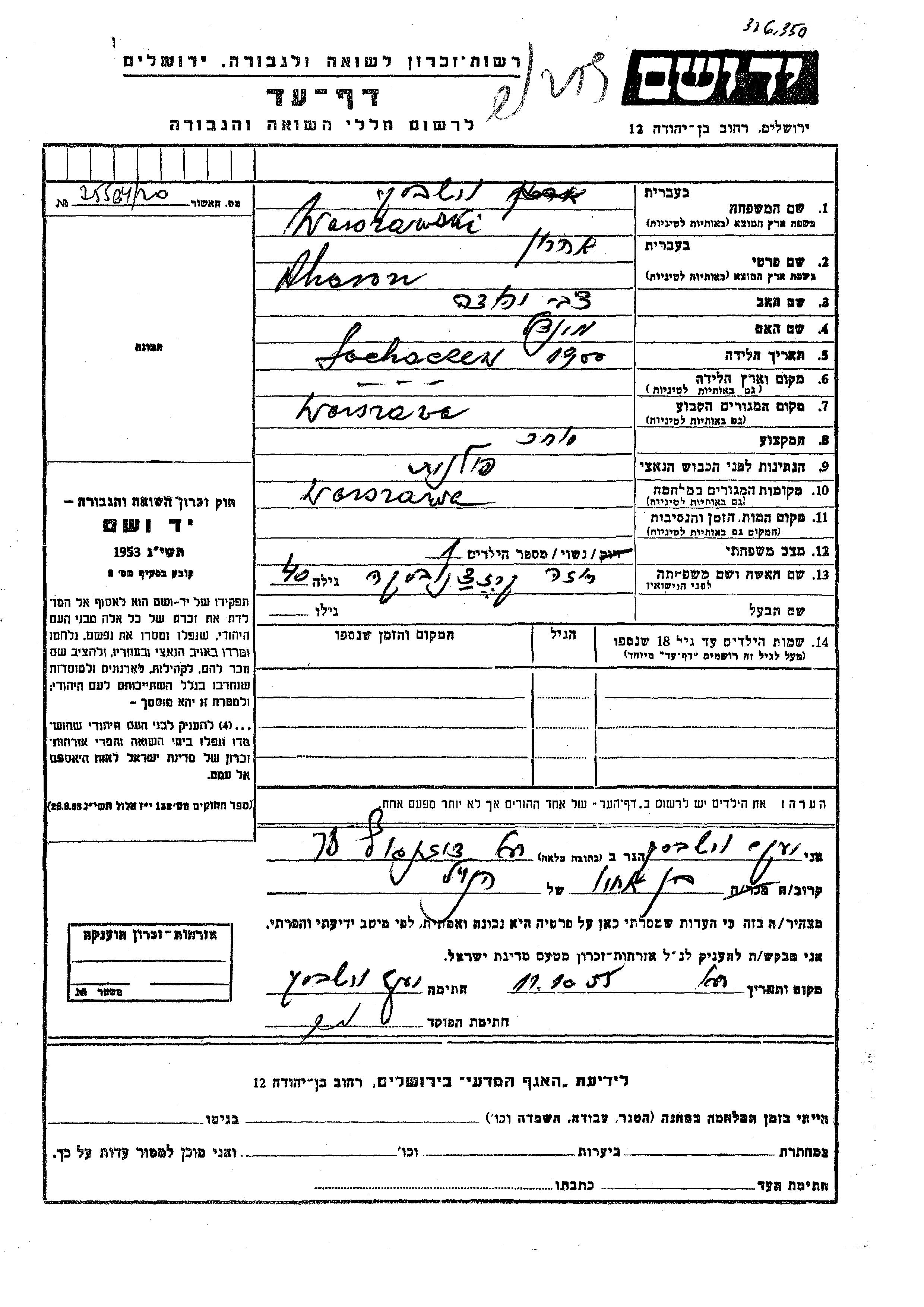 Warszawski Aharon 1900 Warszawa, Poland Page of Testimony