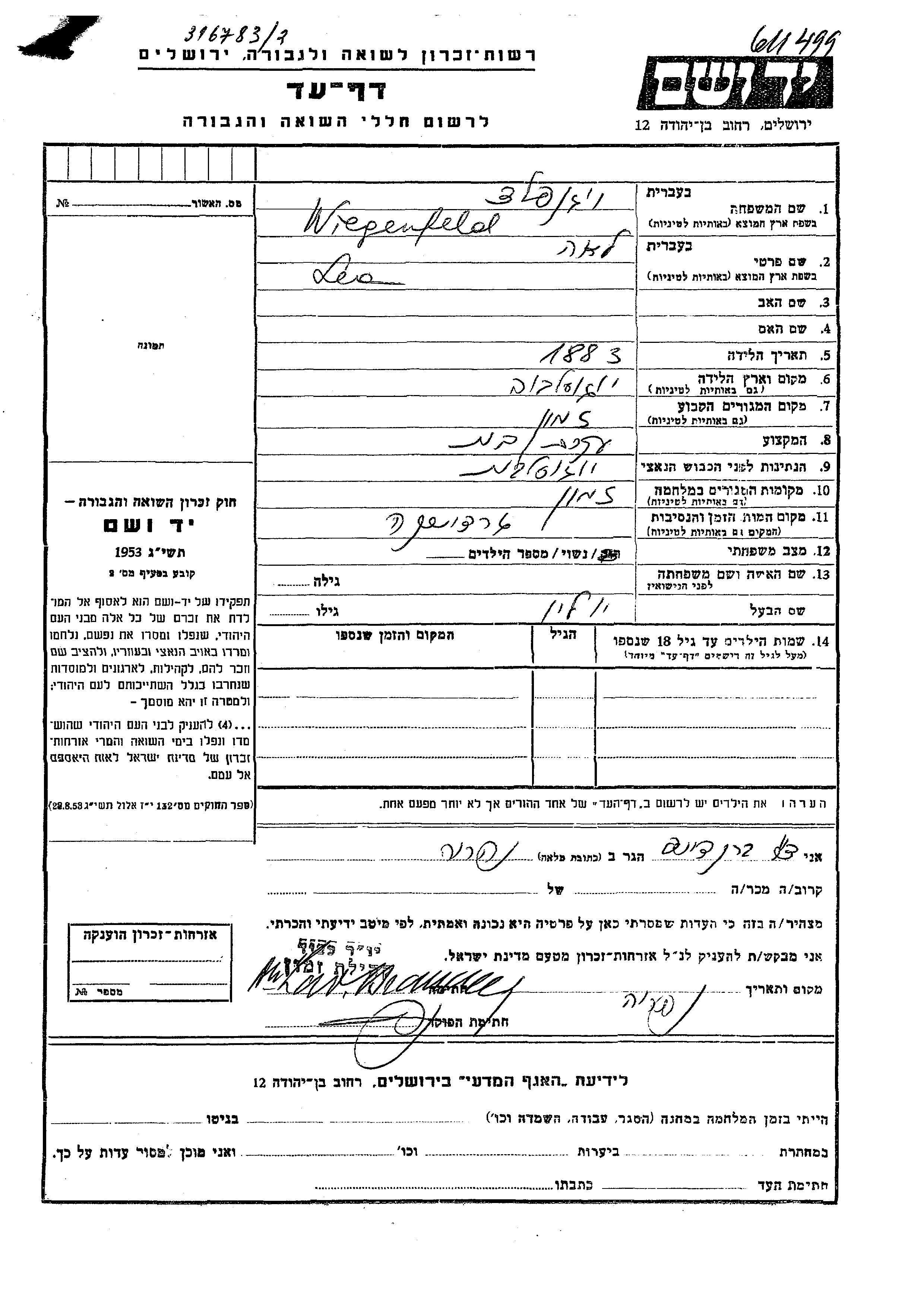 Yad Vashem - Pages of Testimony Names Memorial Collection