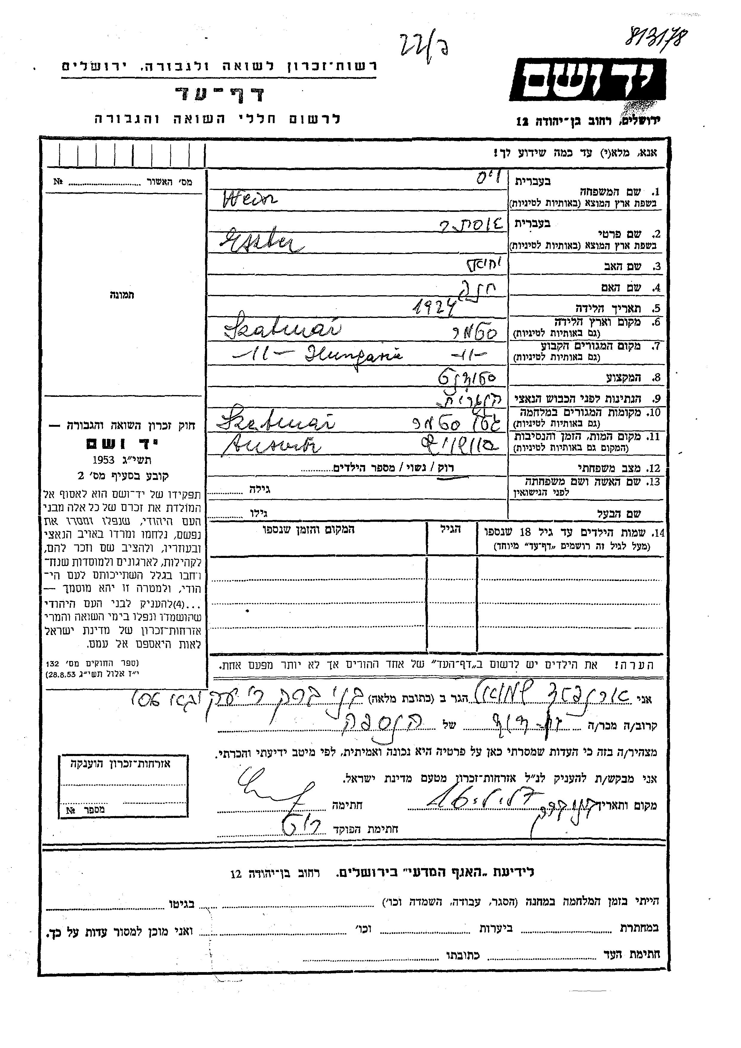 Yad Vashem - Pages of Testimony Names Memorial Collection