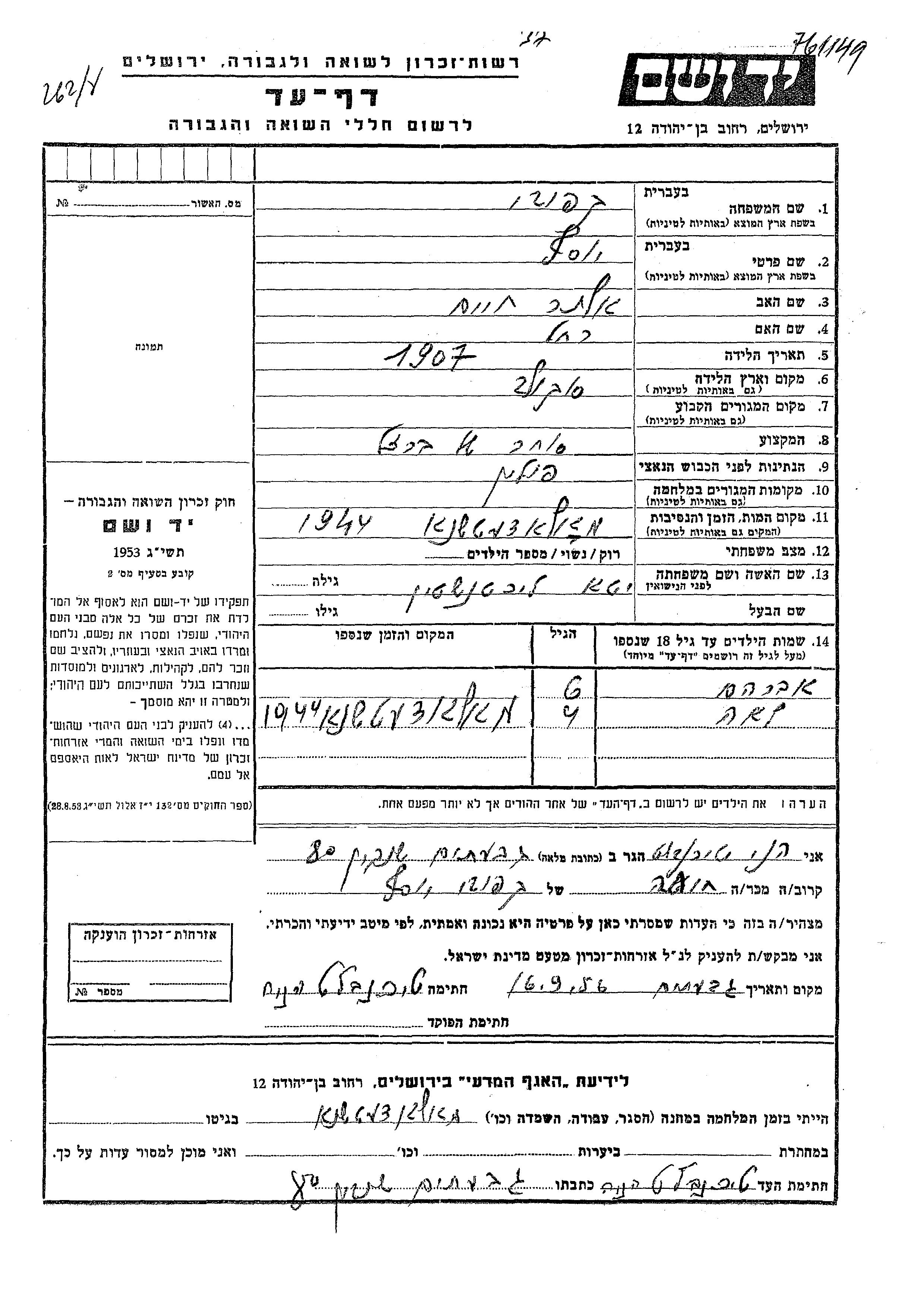 Search by last name of the submitter of the Page of Testimony, including diminutives or nicknames