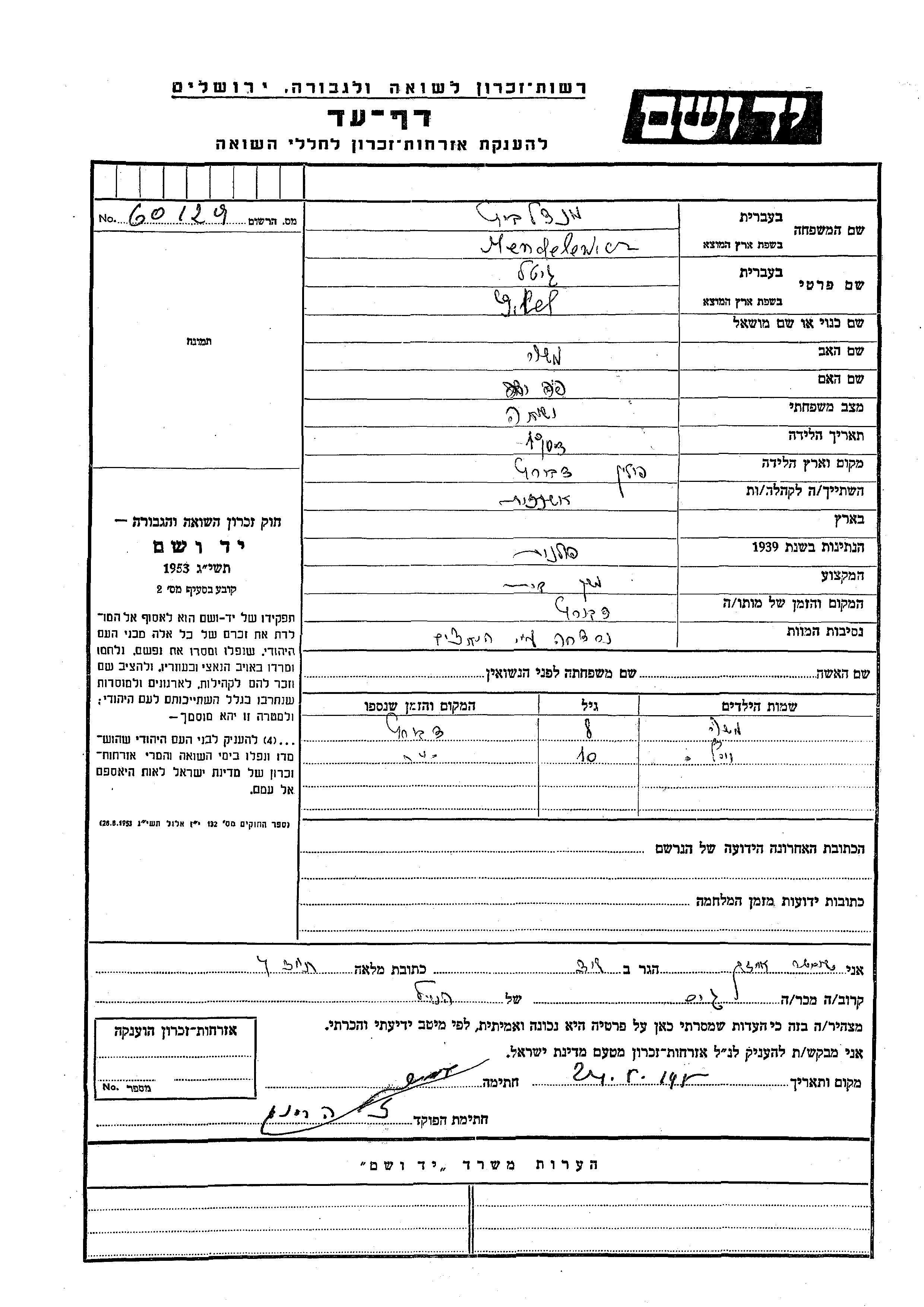 Yad Vashem - Pages of Testimony Names Memorial Collection