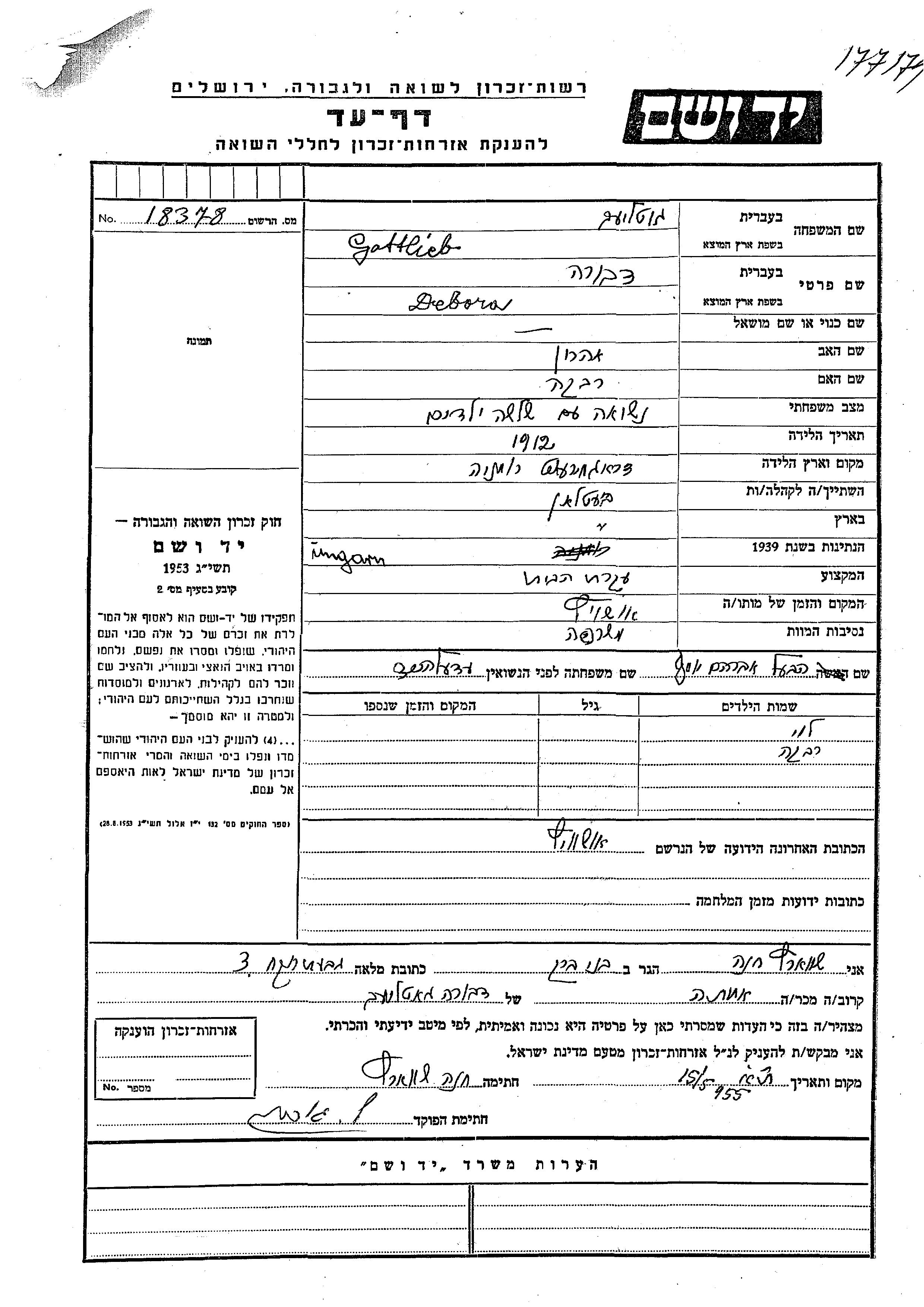 Yad Vashem - Pages of Testimony Names Memorial Collection