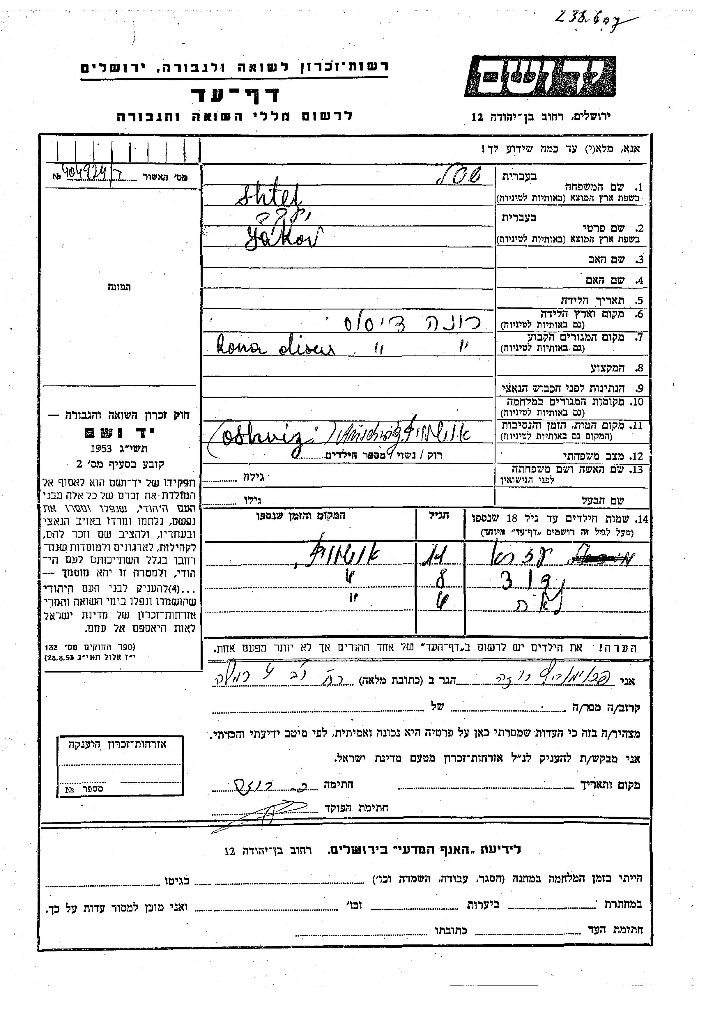 Yad Vashem - Pages of Testimony Names Memorial Collection