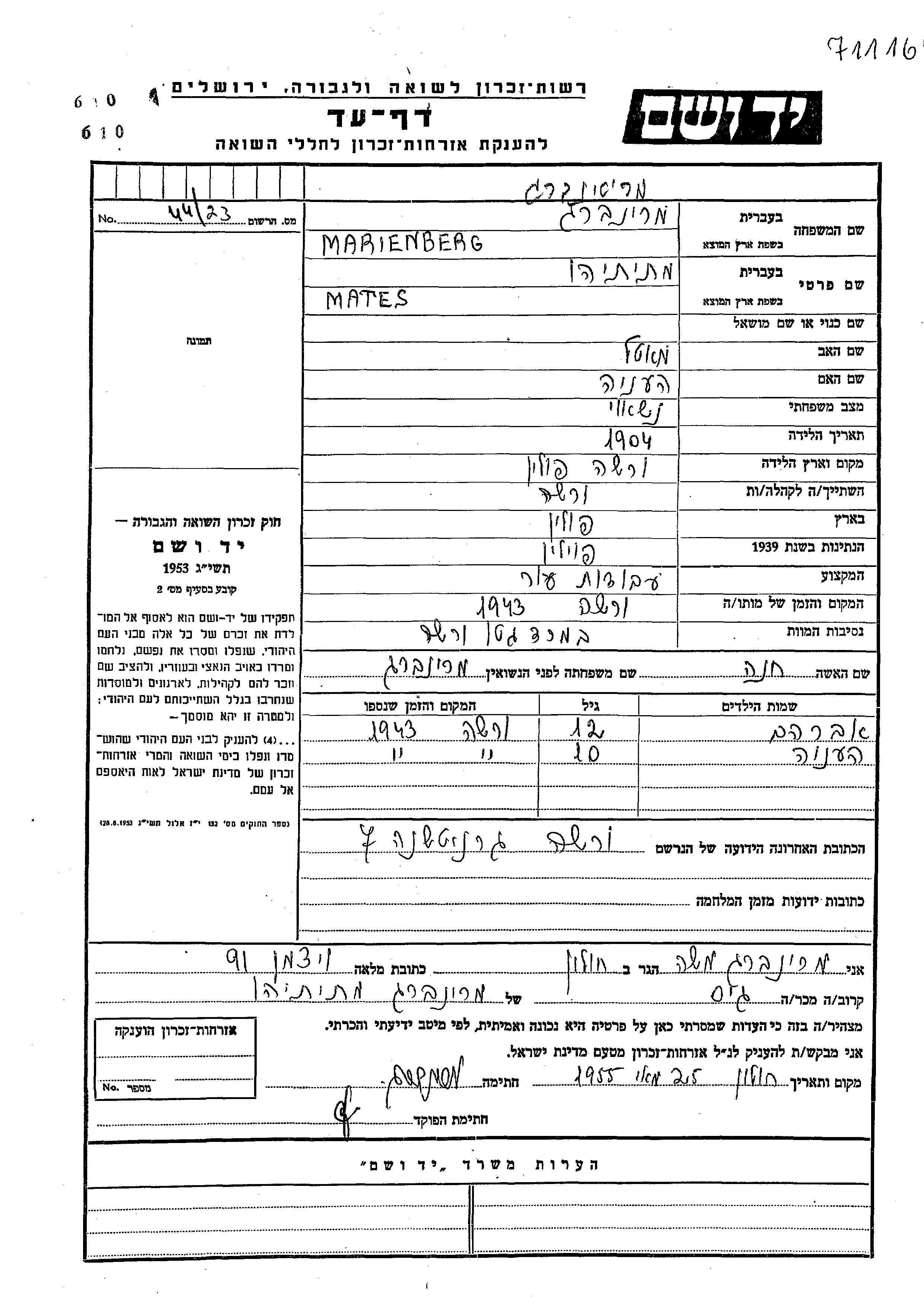 Yad Vashem - Pages of Testimony Names Memorial Collection