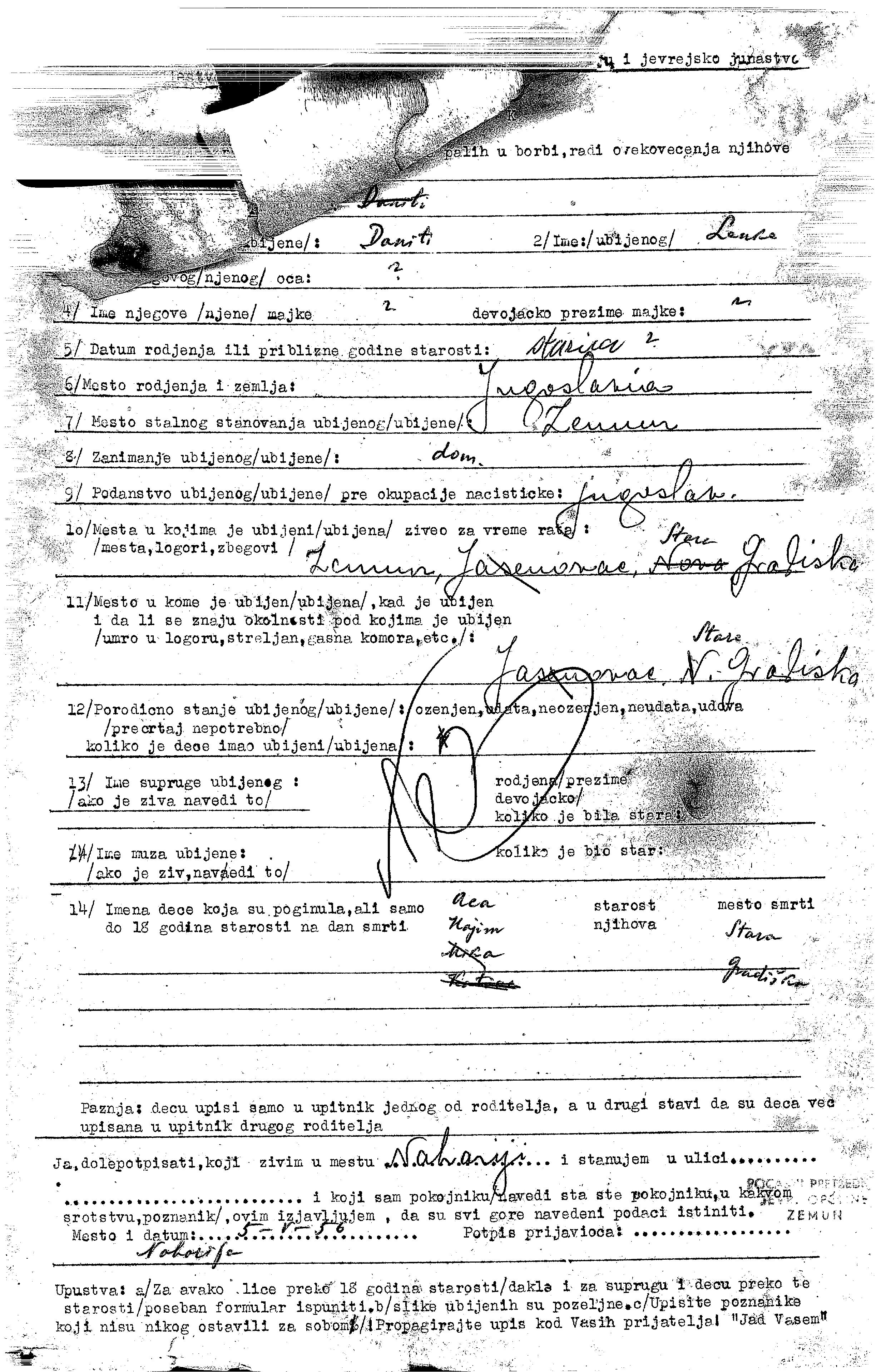 Daniti Mika Zemun, Yugoslavia Page of Testimony