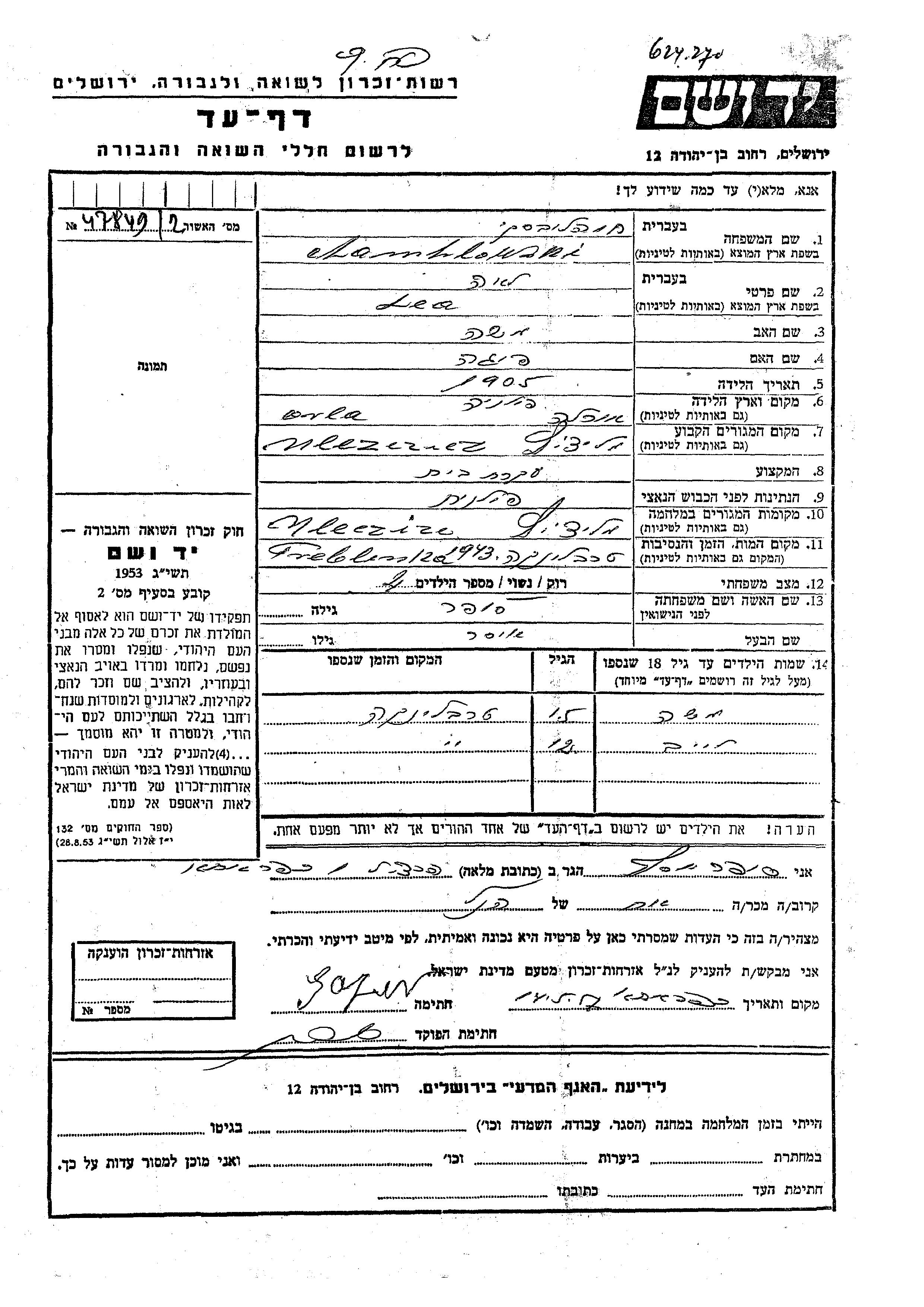 Lea Champlowski nee Sofer was born in Orla, Poland, 1905 to Moshe and Feiga. She was a housewife and married to Isser. Prior to WWII she lived in Melciet, Poland. During the war she was in Melciet, Poland. Lea was murdered in the Shoah. Place of death: Treblinka, Poland, 1943.