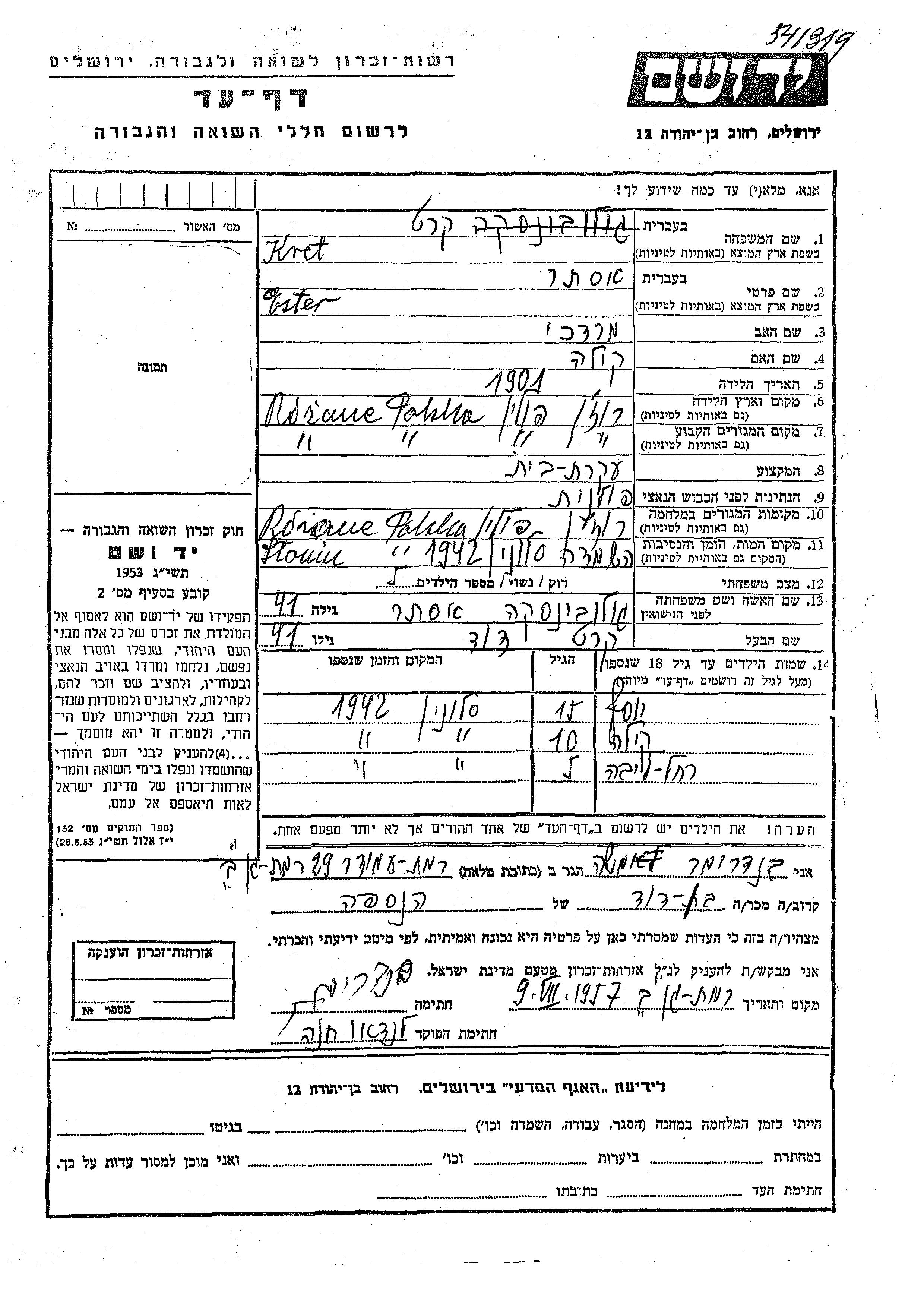 Keila Kret Kart was born to David and Ester nee Golovinska. She was child. Prior to WWII she lived in Rozana, Poland. During the war she was in Rozana, Poland. Keila was murdered in the Shoah.