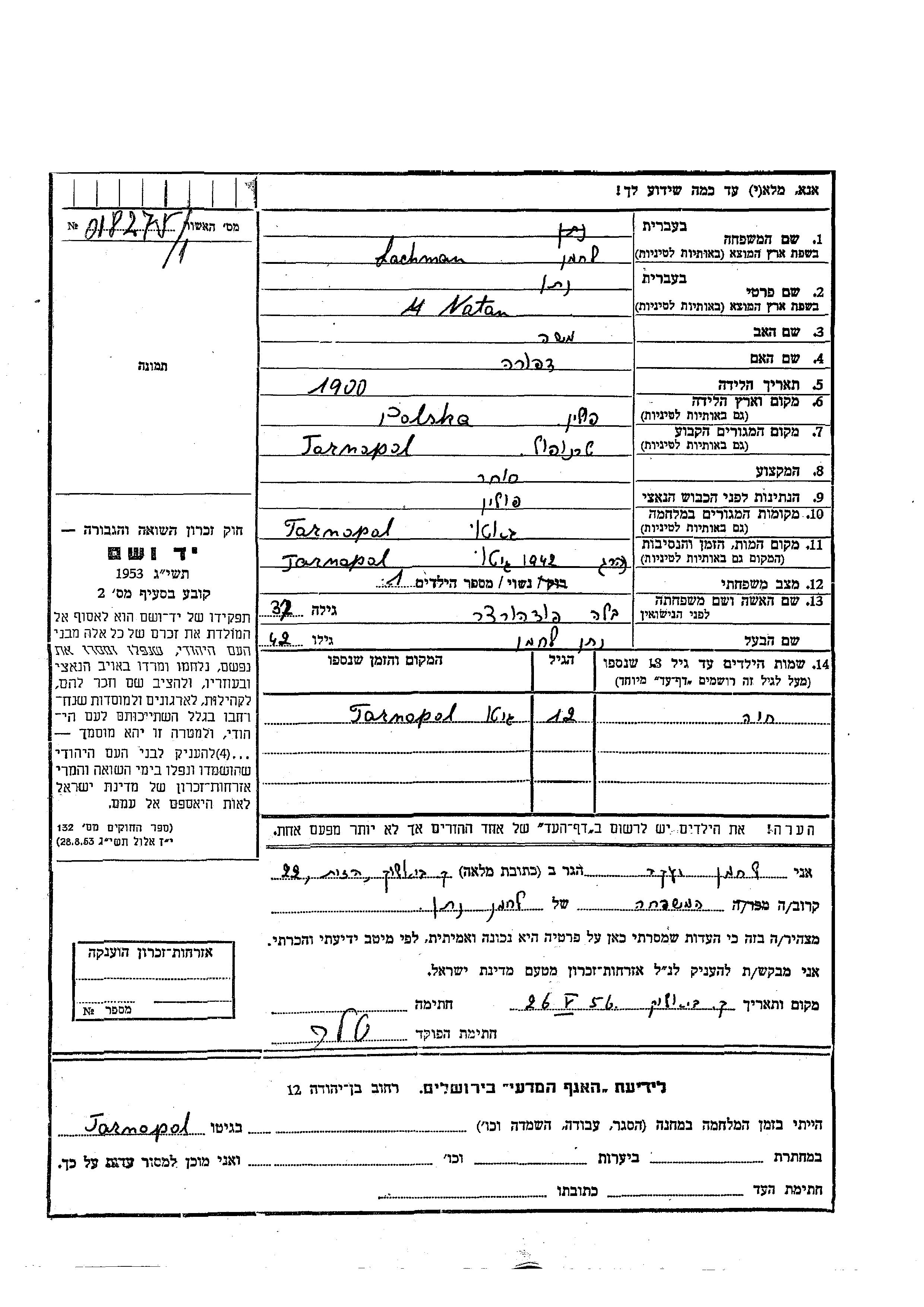 Lachman Khaia Tarnopol, Poland Page of Testimony