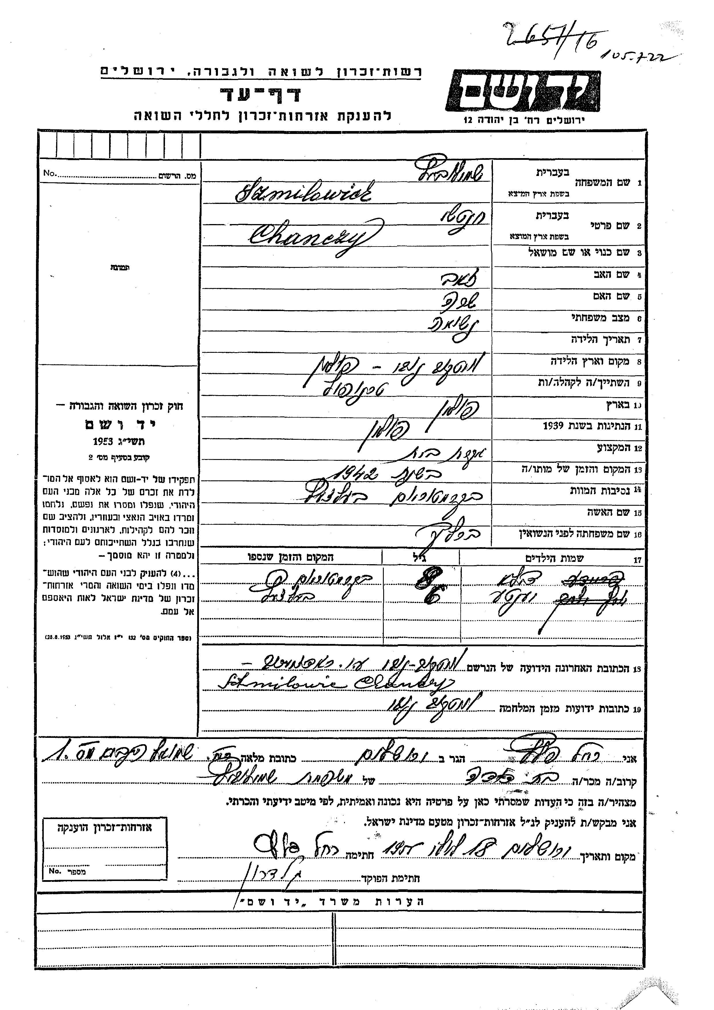 Yad Vashem - Pages of Testimony Names Memorial Collection