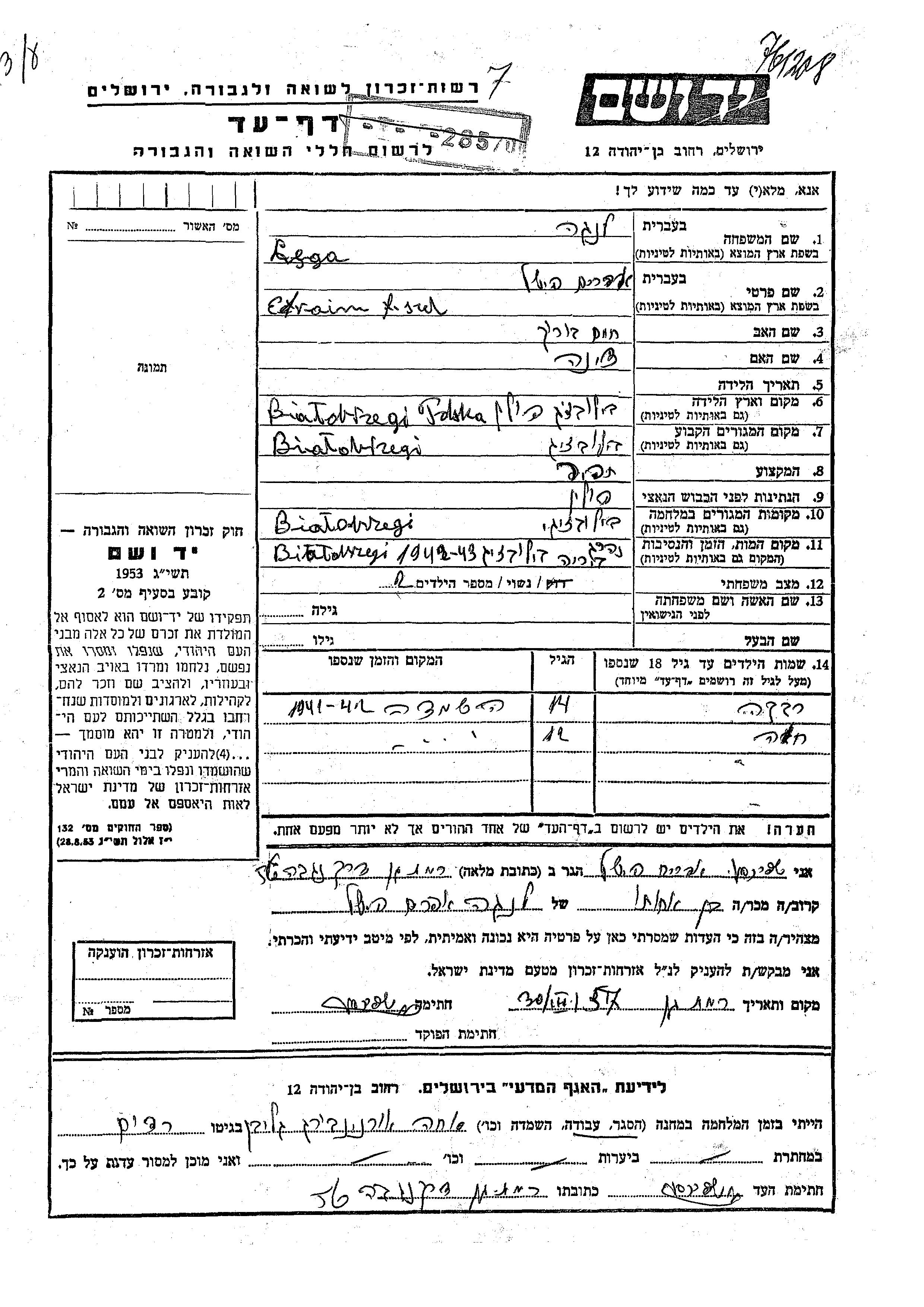 Khava Lenga Lange was born to Fiszel Efraim. She was child. Prior to WWII she lived in Bialobrzegi, Poland. During the war she was in Bialobrzegi, Poland. Khava was murdered in the Shoah.