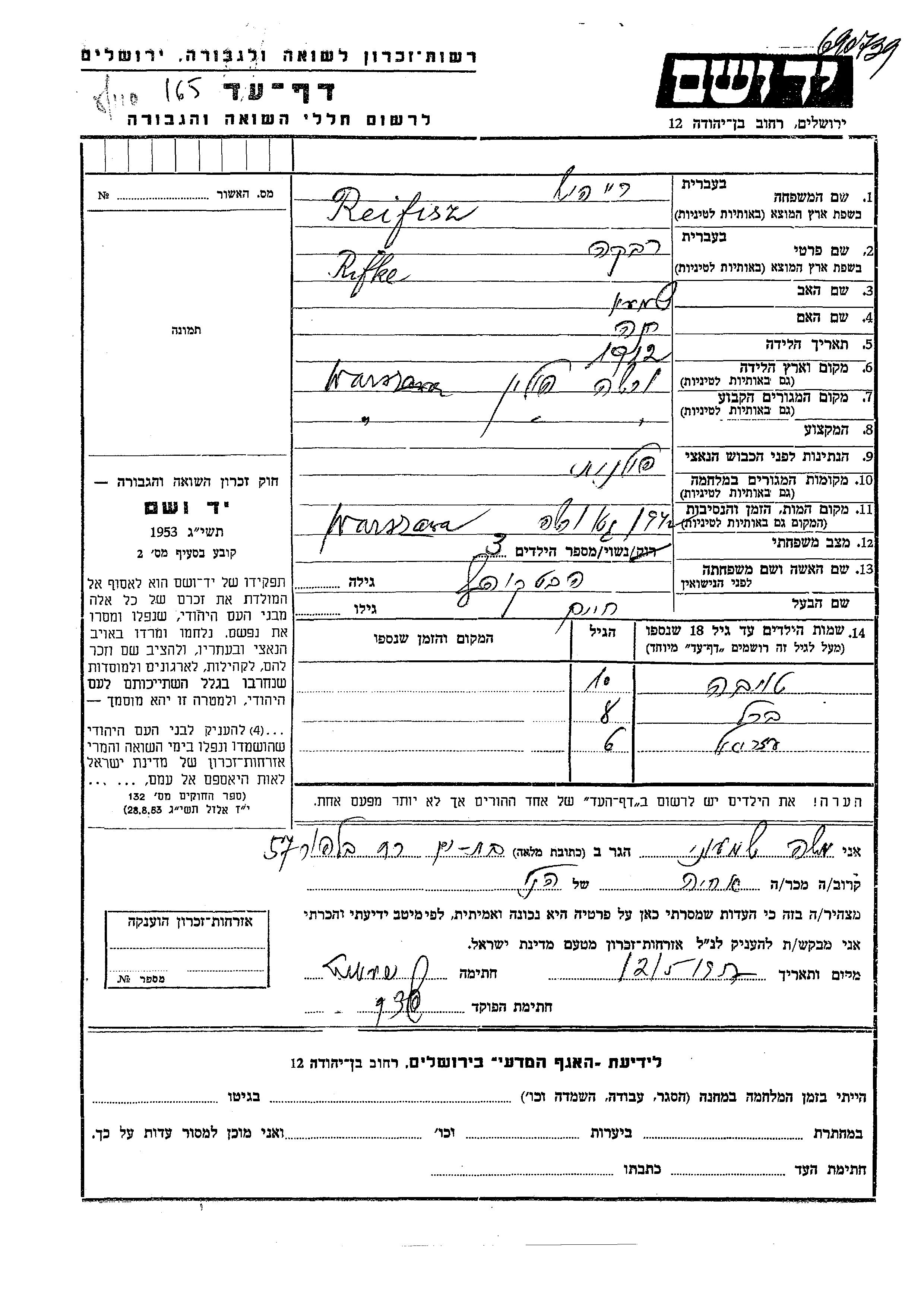 Reifisz Azriel Warszawa, Poland Page of Testimony