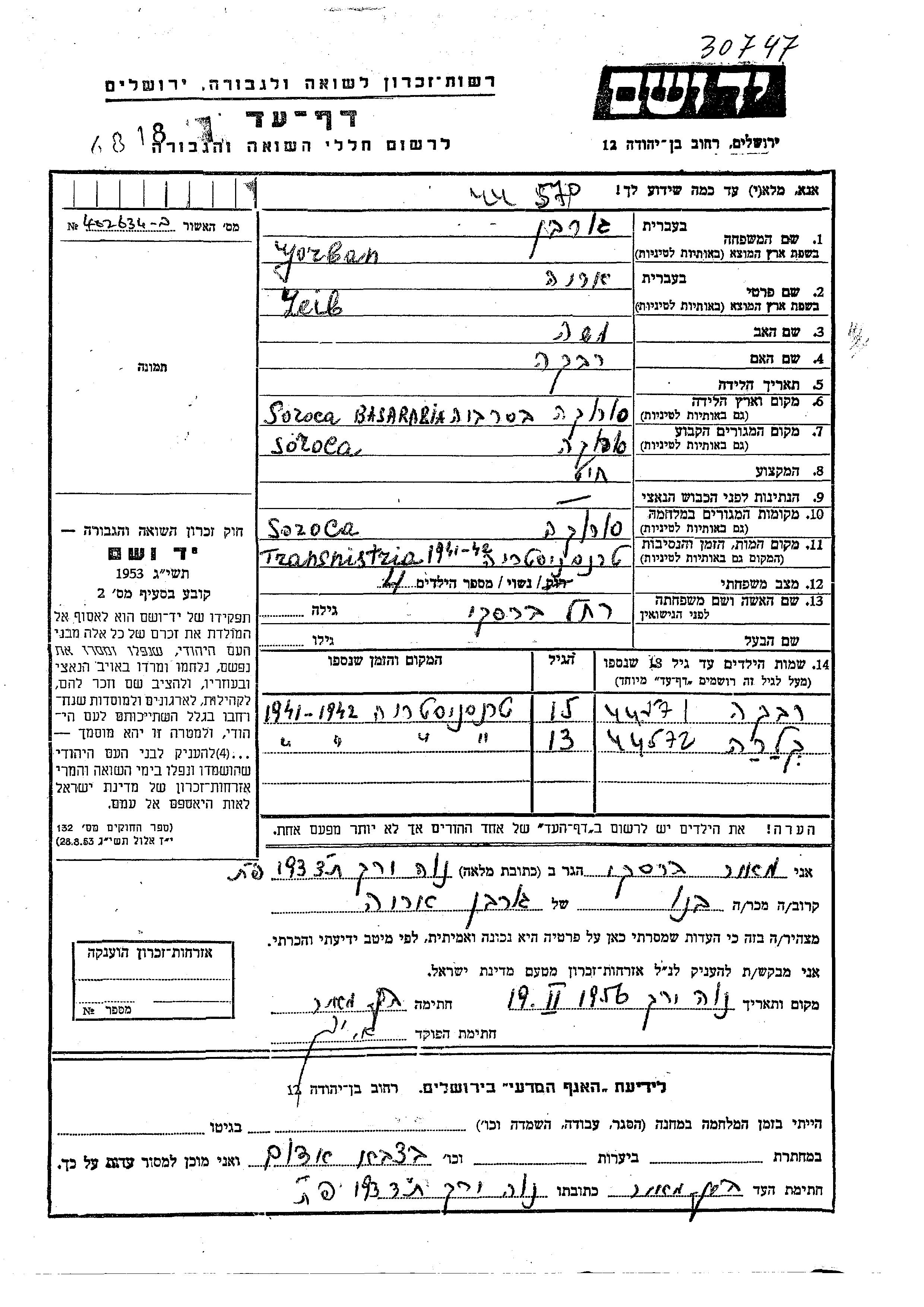 Rivka Gorban was born to Leib Arie and Rakhel nee Barski. She was child. Prior to WWII she lived in Soroca, Romania. During the war she was in Soroca, Romania. Rivka was murdered in the Shoah.