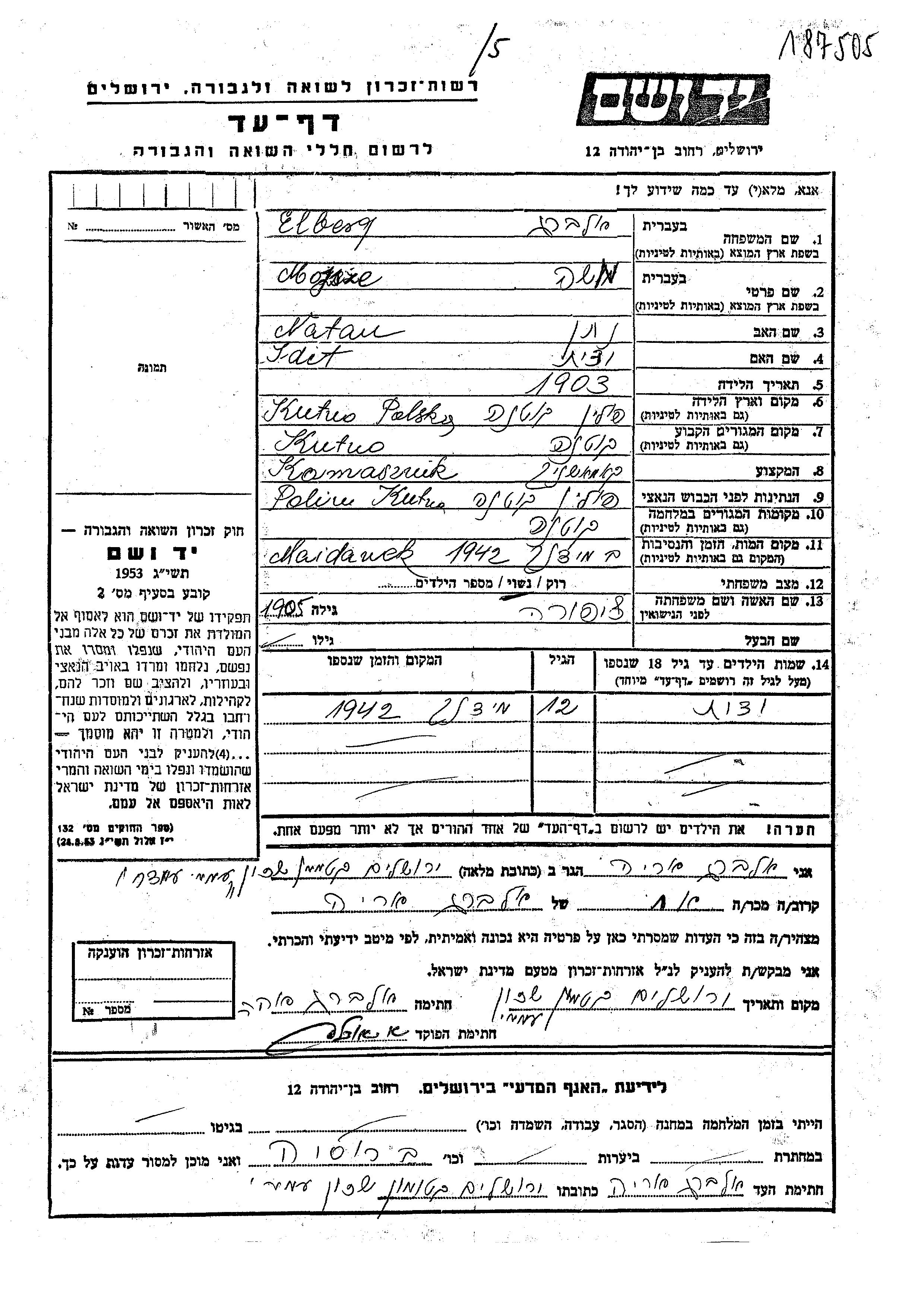 Yad Vashem - Pages of Testimony Names Memorial Collection