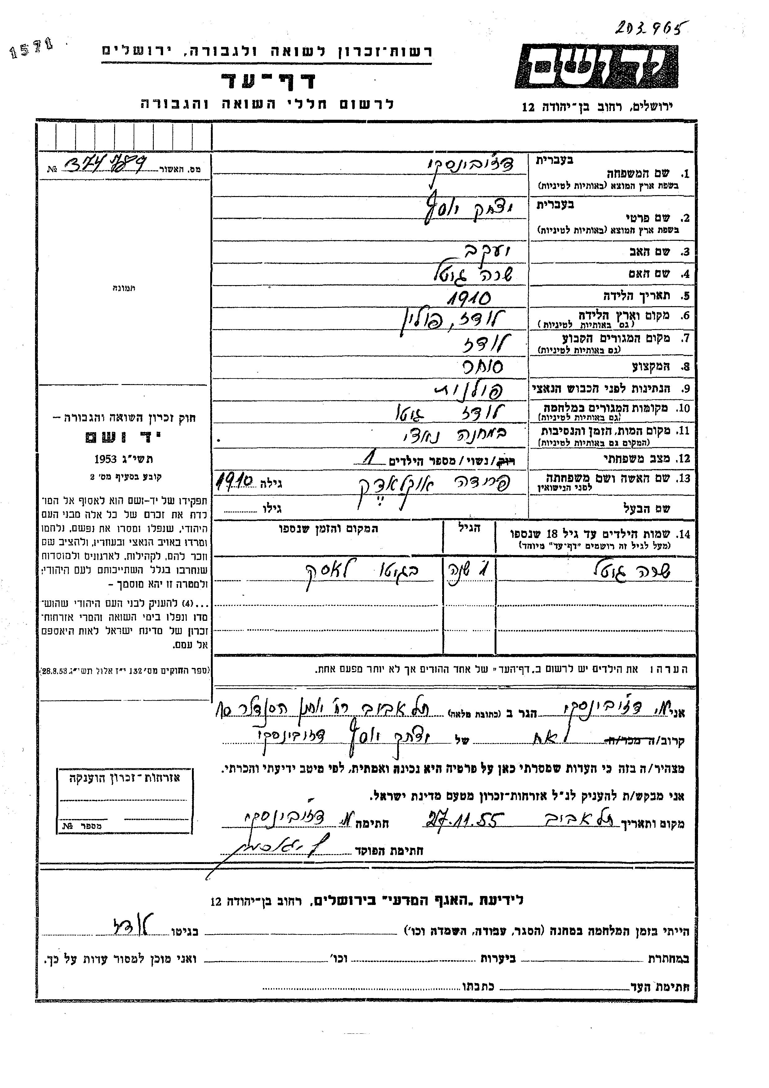 Sara Gitel Dzubinski was born to Yitzkhak Yosef and Frida nee Okladek. She was child. Prior to WWII she lived in Lodz, Poland. During the war she was in Lodz, Poland. Sara Gitel was murdered in the Shoah.