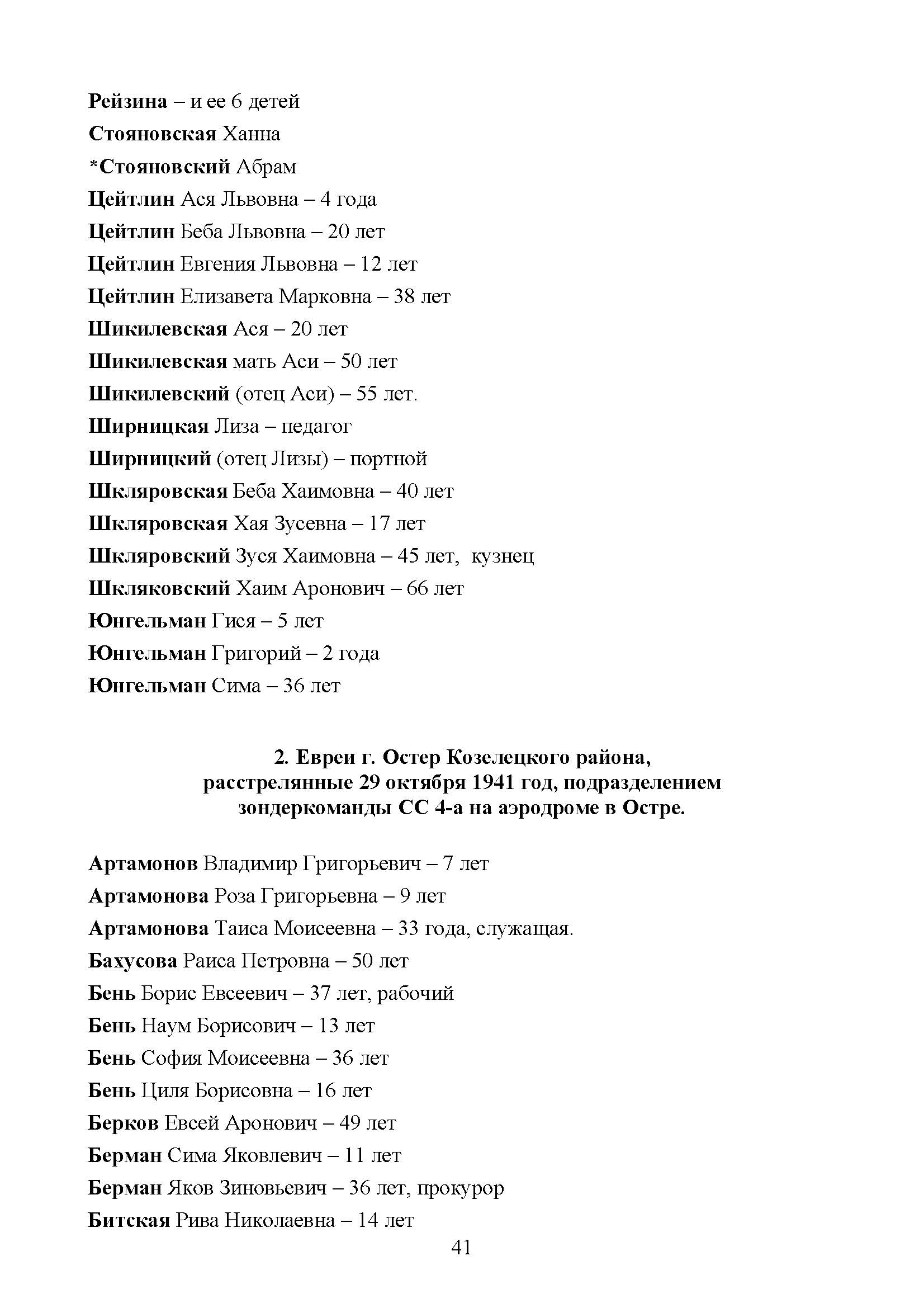 Shklyarovski Zusya Kozelets, Ukraine (USSR) List of persecuted persons