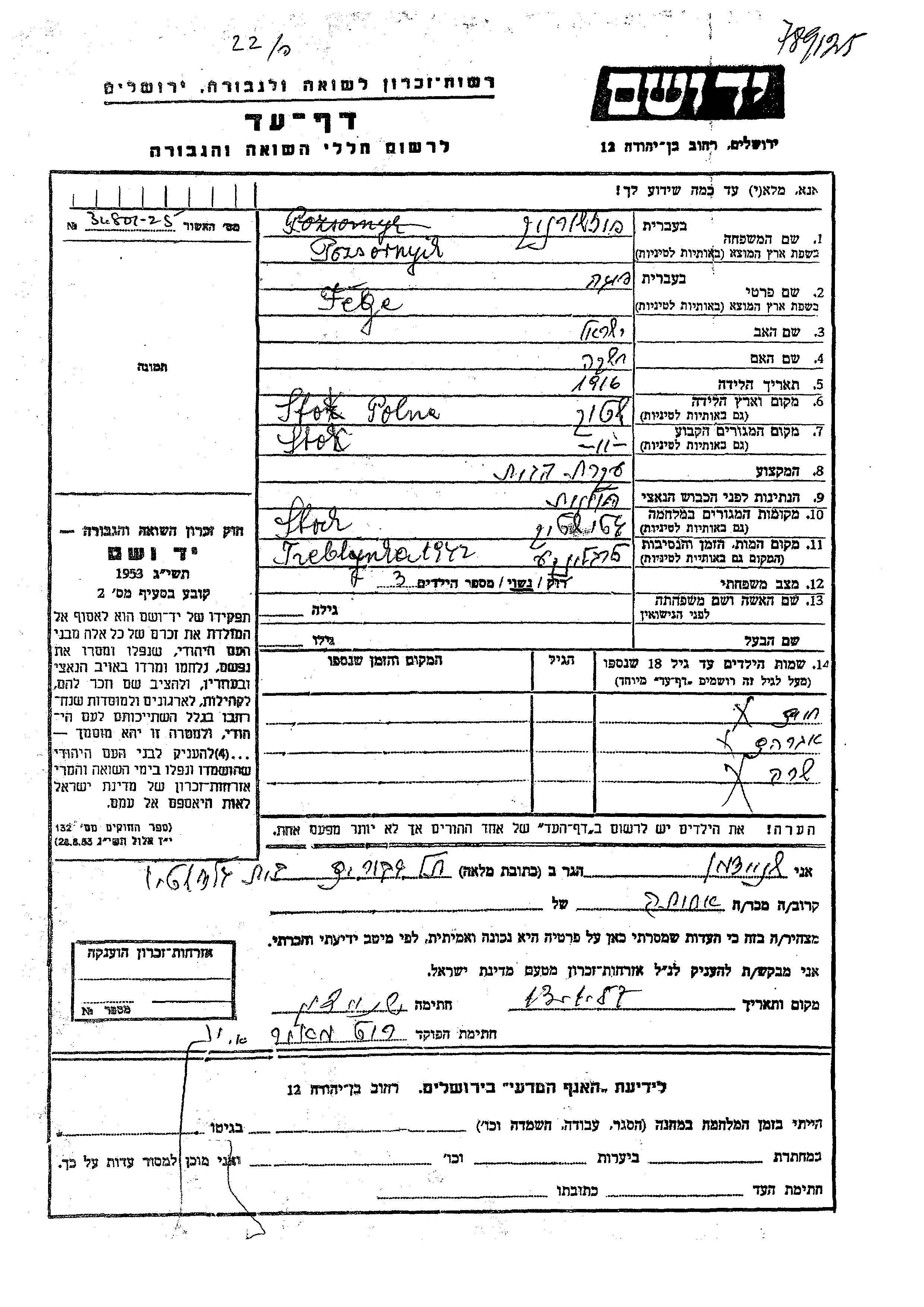 Yad Vashem - Pages of Testimony Names Memorial Collection