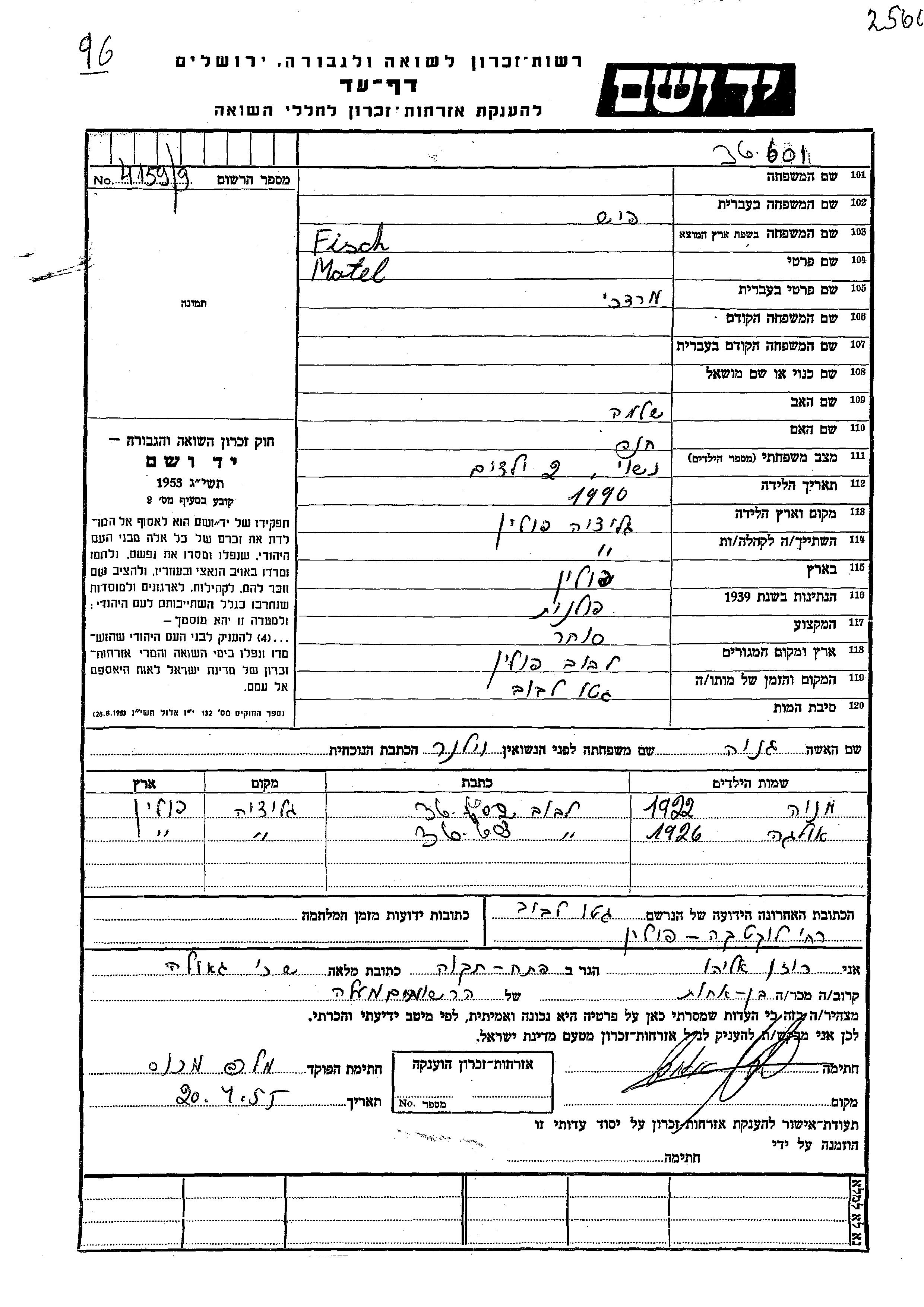 Olga Fisch was born, 1926 to Motel and Genya nee Vilner. She was child. Prior to WWII she lived in Lwow, Poland. During the war she was in Lwow, Poland. Olga was murdered in the Shoah.