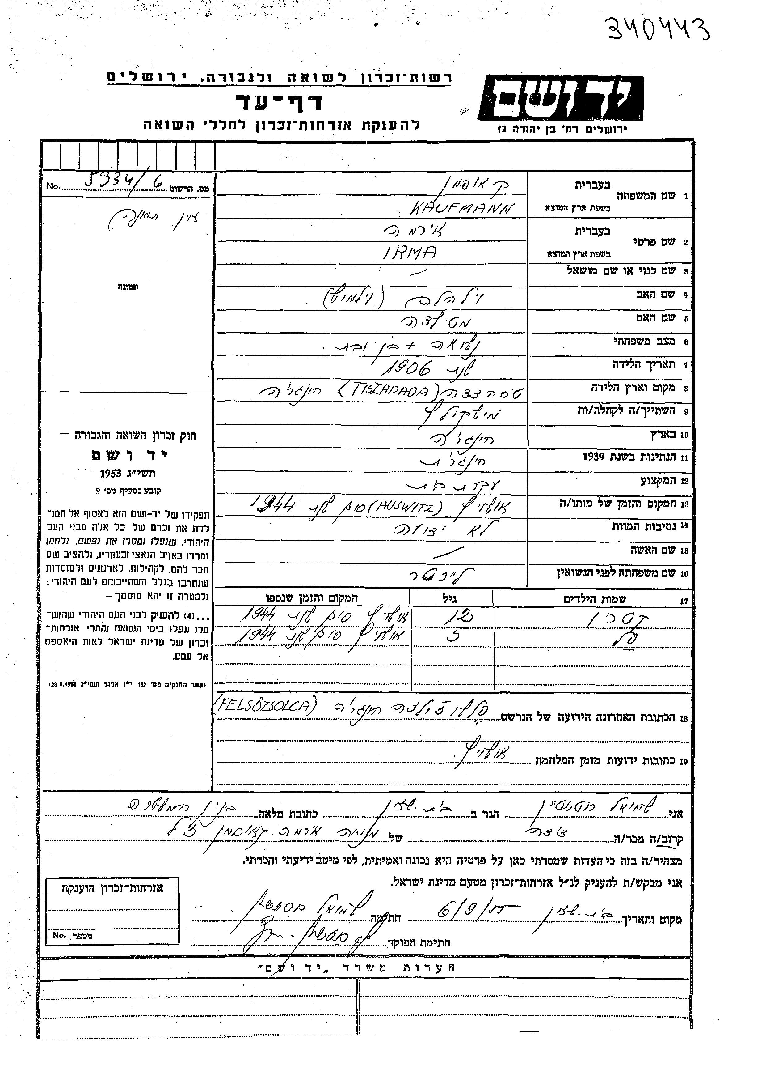 Yad Vashem - Pages of Testimony Names Memorial Collection