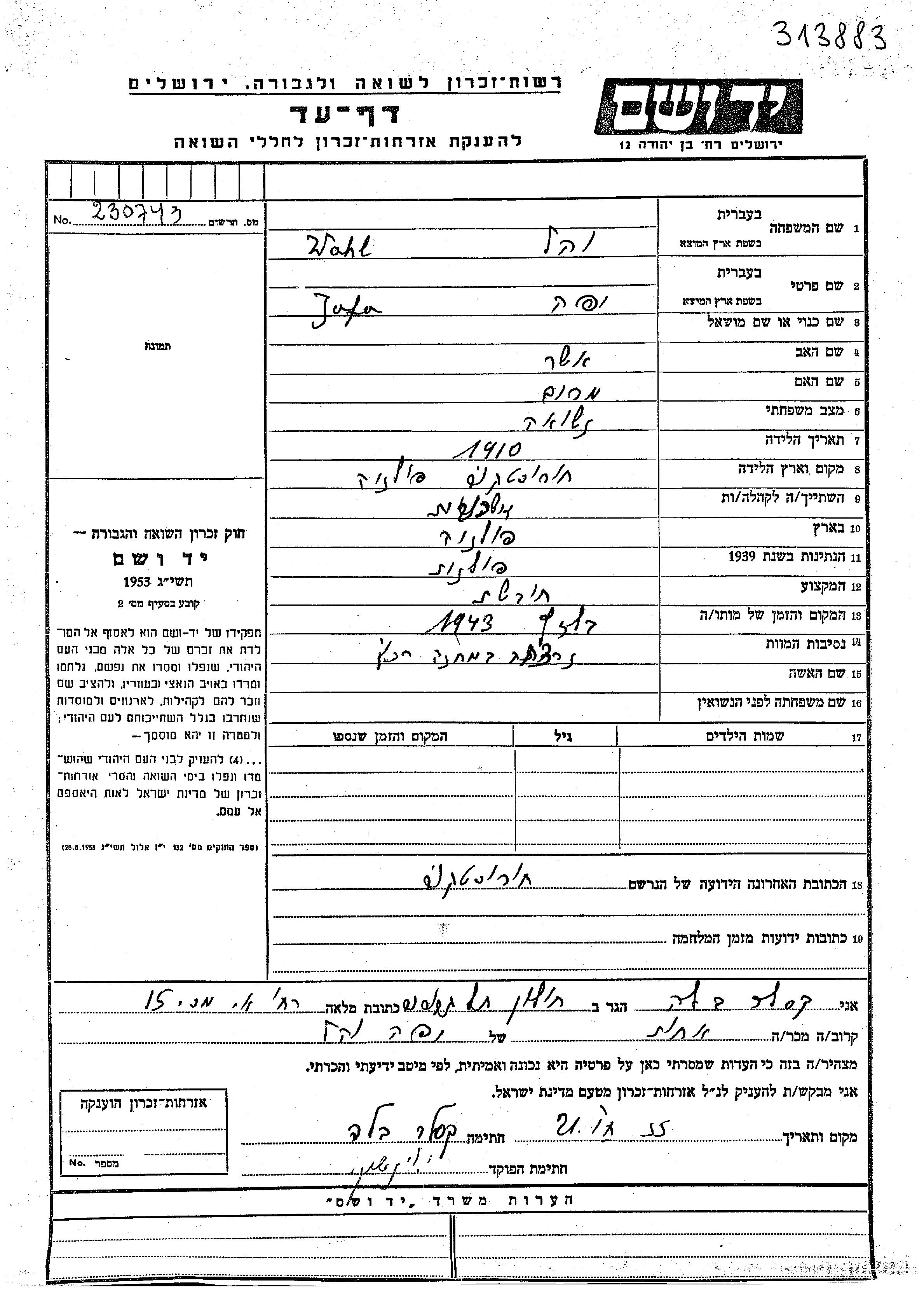 Yad Vashem - Pages of Testimony Names Memorial Collection
