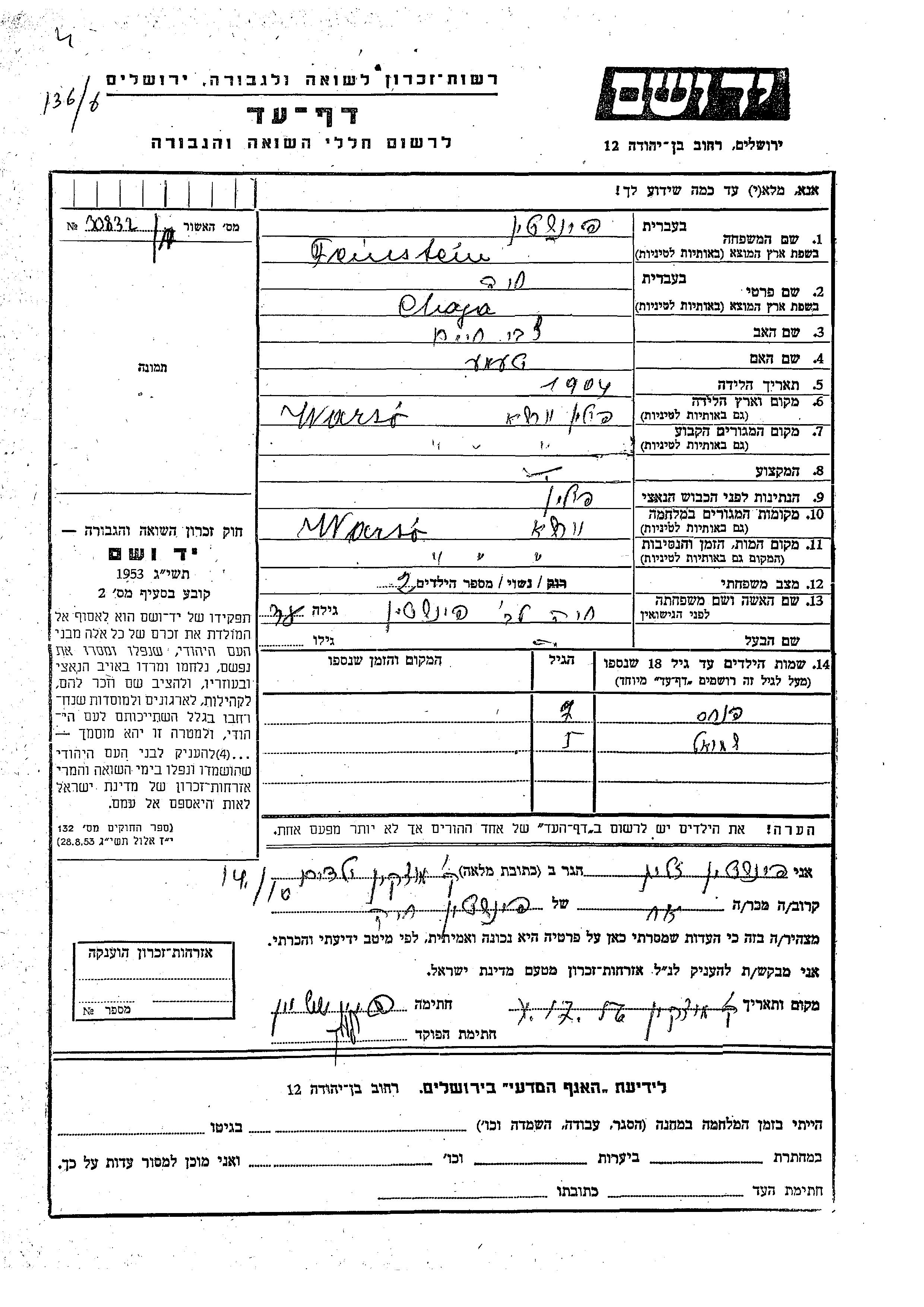 Yad Vashem - Pages of Testimony Names Memorial Collection