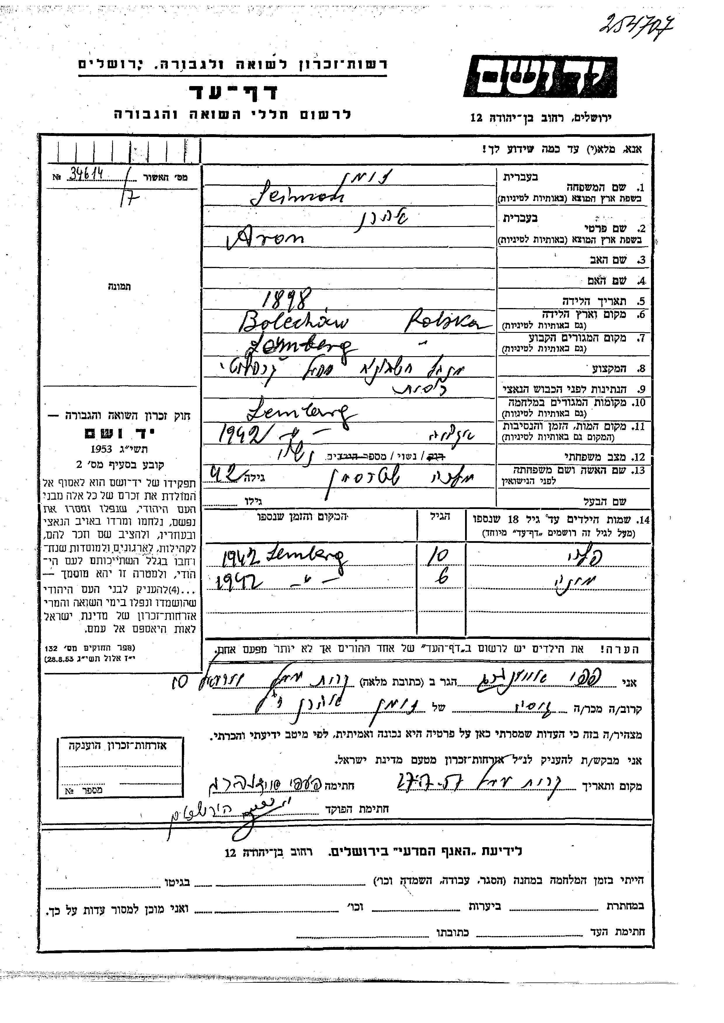 Fela Seiman Ziman was born to Aron and Malka nee Shtrasman. She was child. Prior to WWII she lived in Lemberg, Poland. During the war she was in Lemberg, Poland. Fela was murdered in the Shoah.