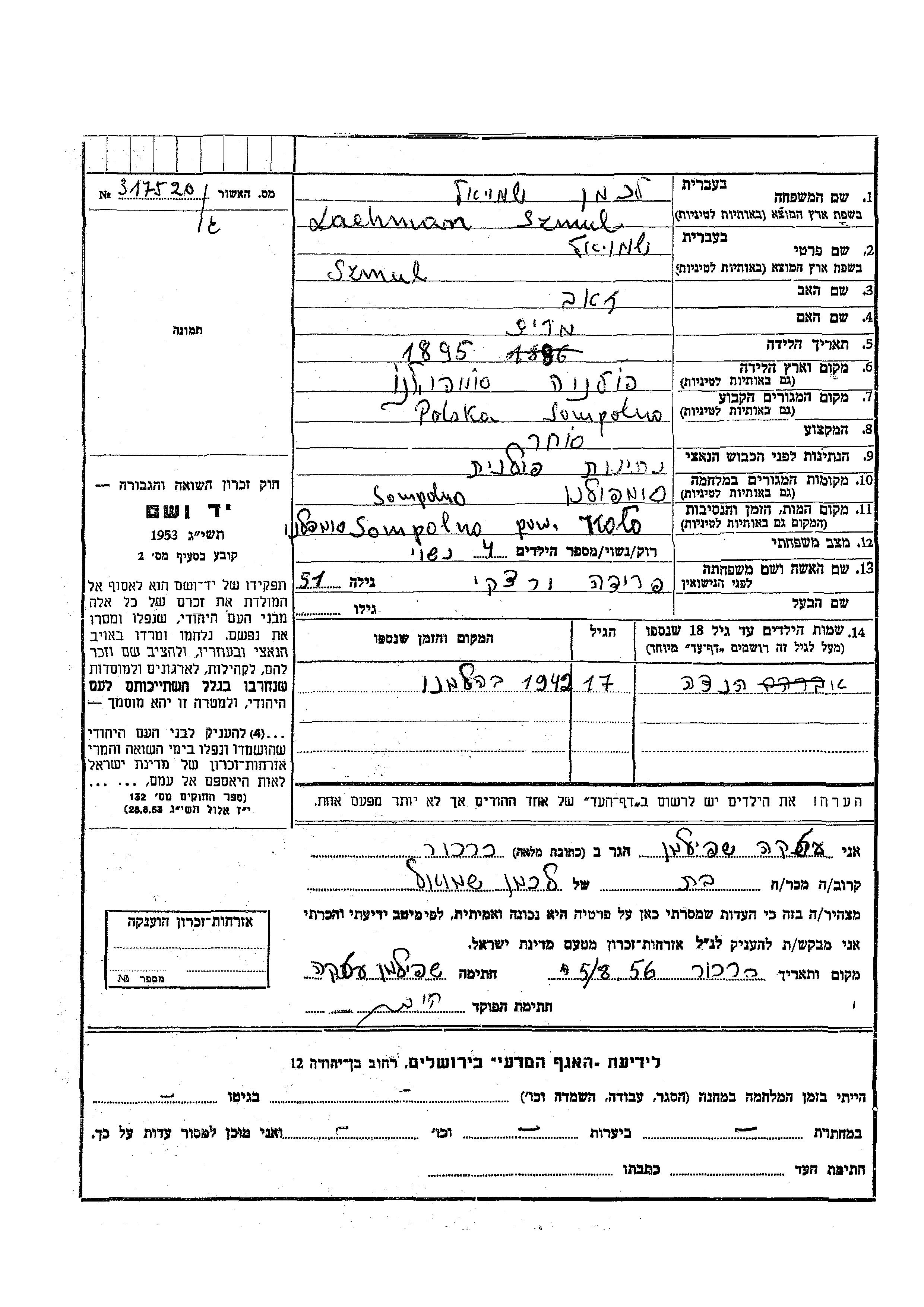 Lachman Hinda Sompolno, Poland Page of Testimony