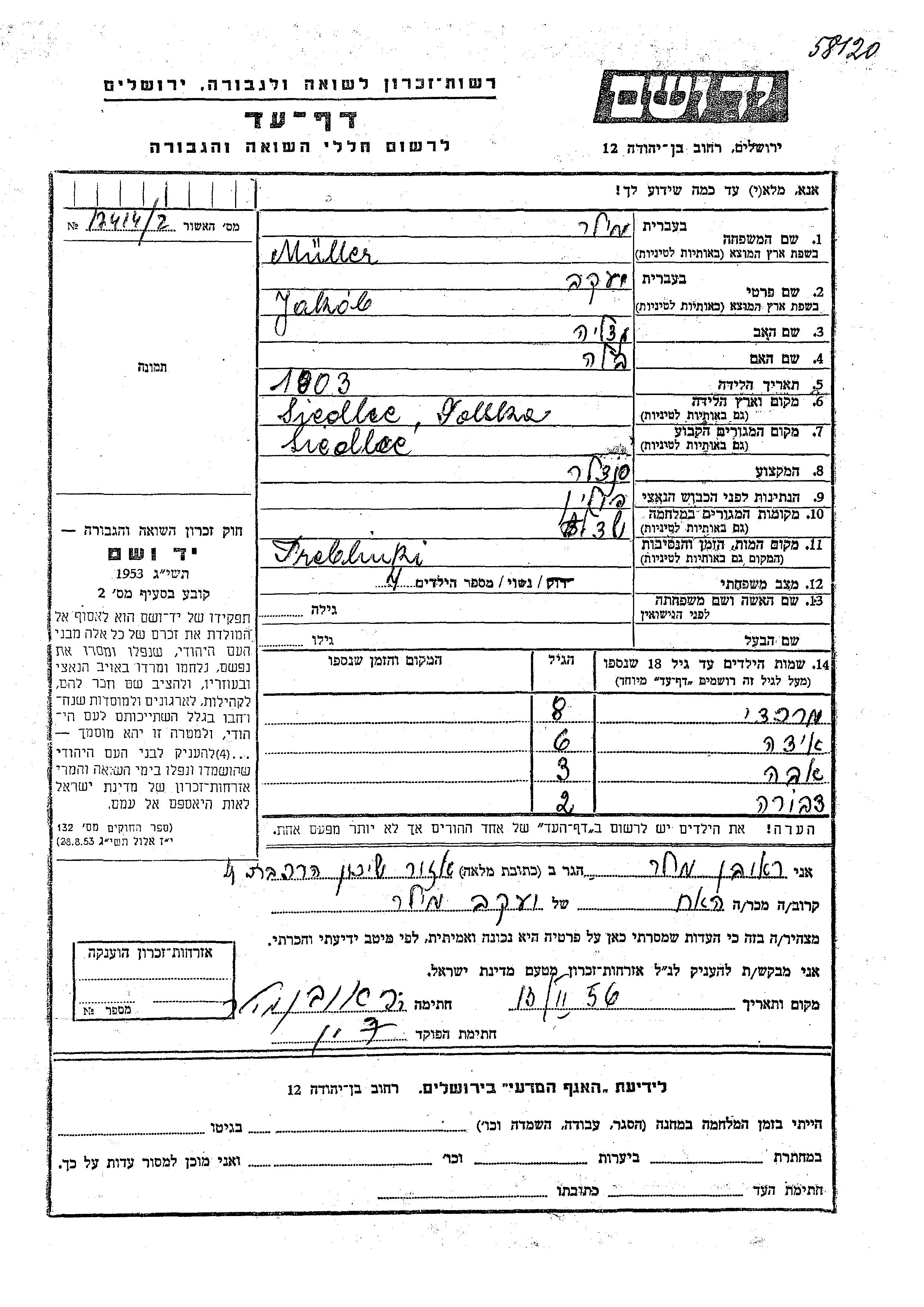 Yad Vashem - Pages of Testimony Names Memorial Collection