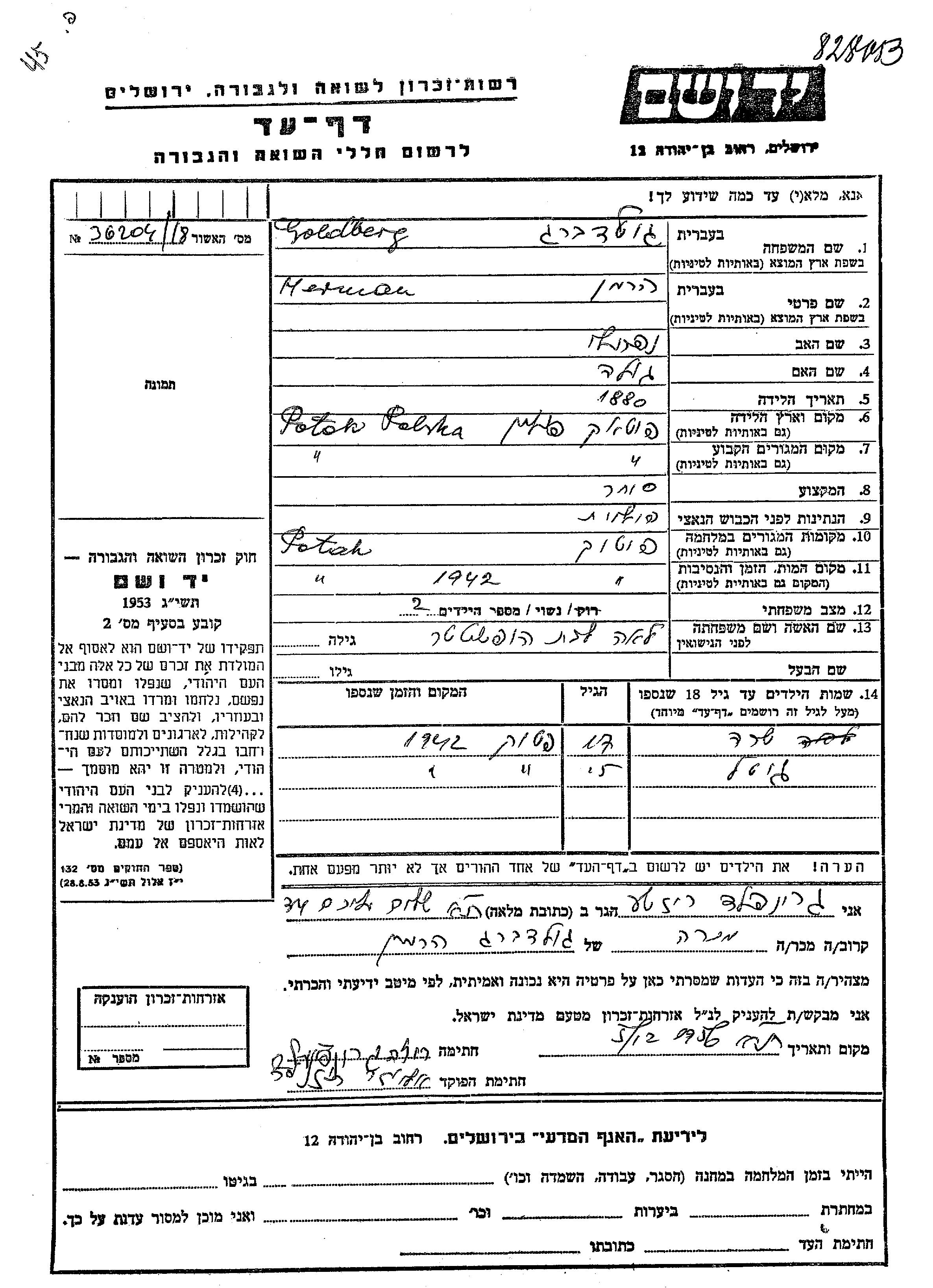 Yad Vashem - Pages of Testimony Names Memorial Collection