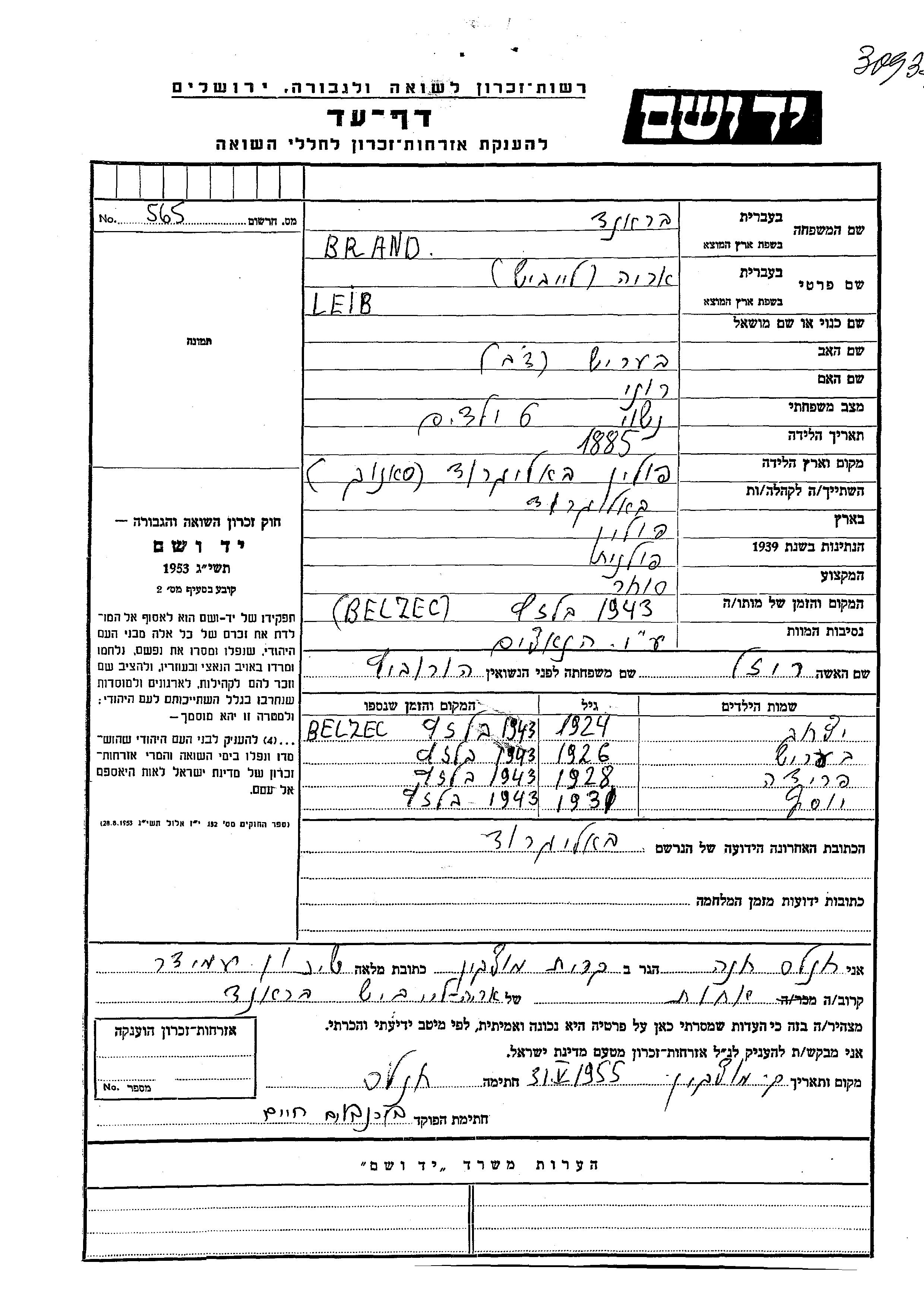 Yad Vashem - Pages of Testimony Names Memorial Collection