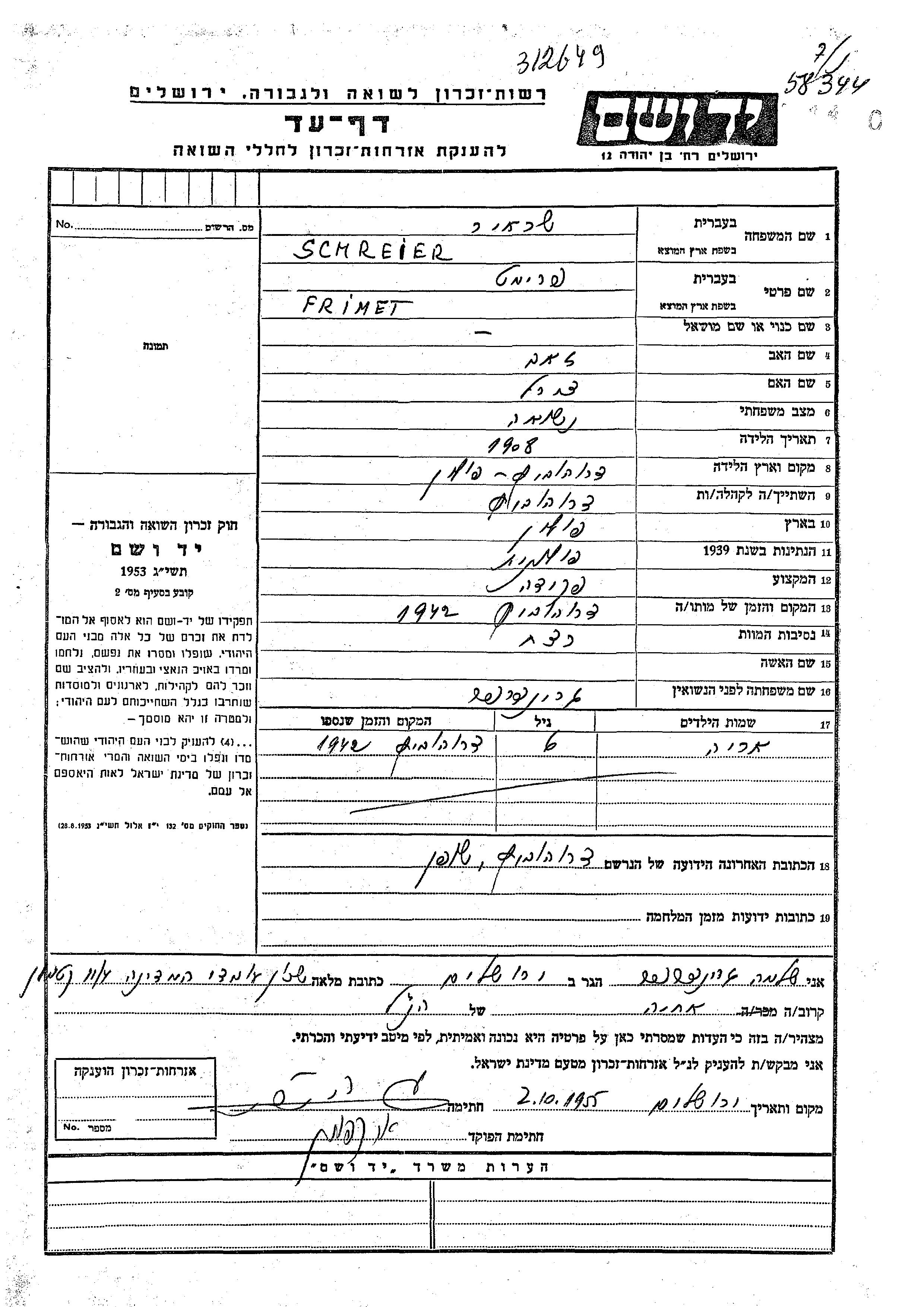 Yad Vashem - Pages of Testimony Names Memorial Collection