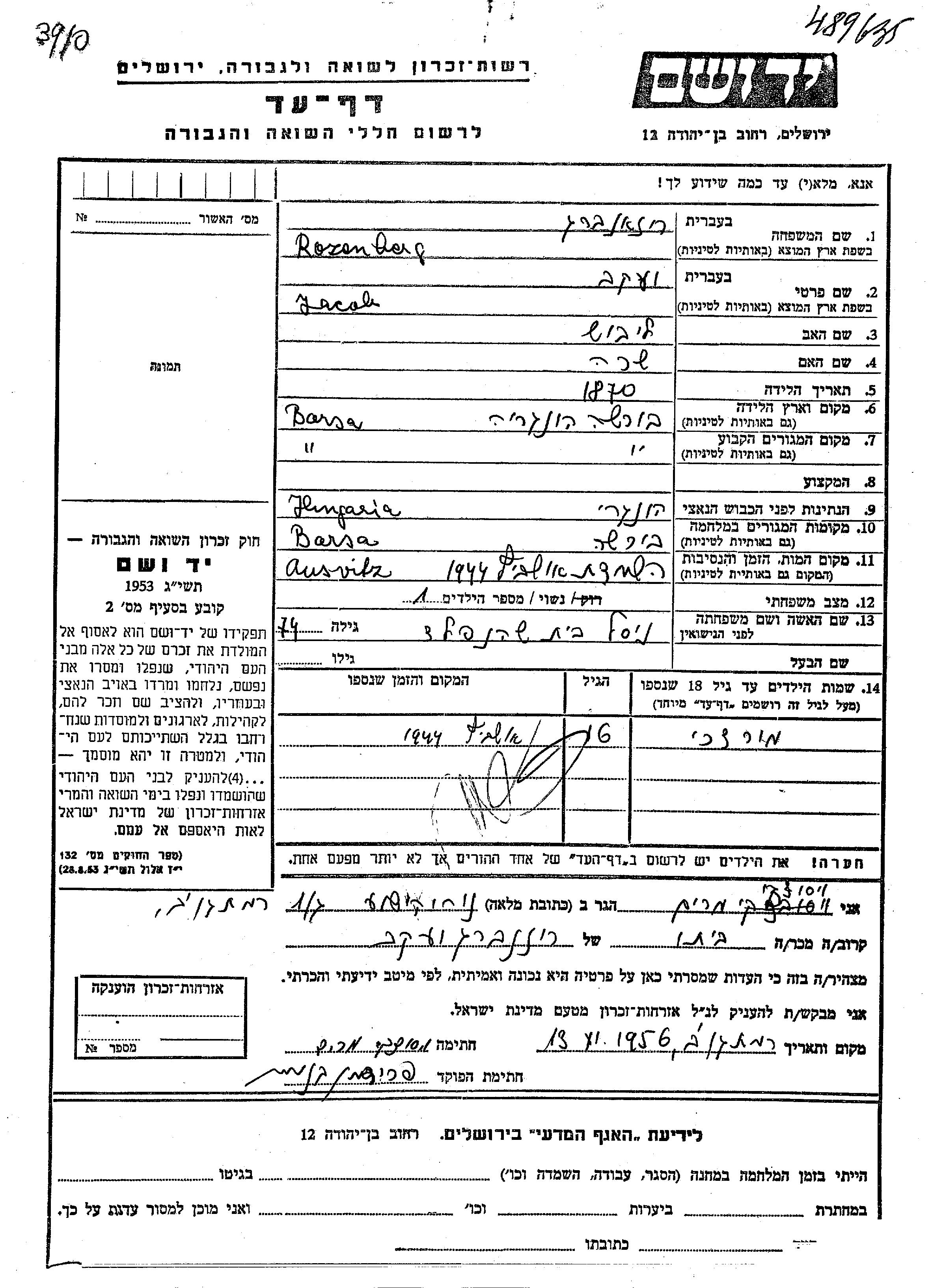 Rozenberg Mordechai Varsha, Poland Page of Testimony