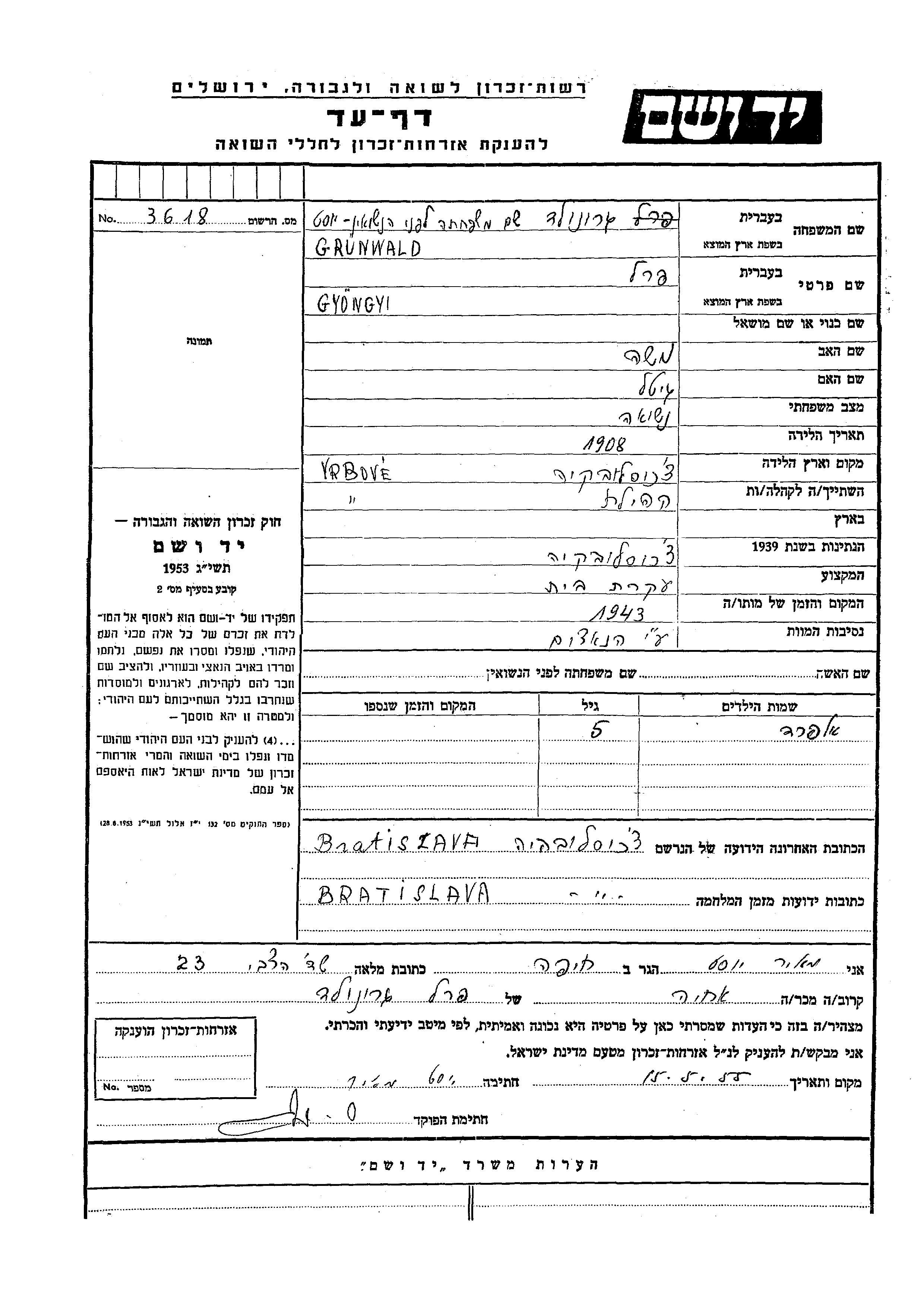 Yad Vashem - Pages of Testimony Names Memorial Collection