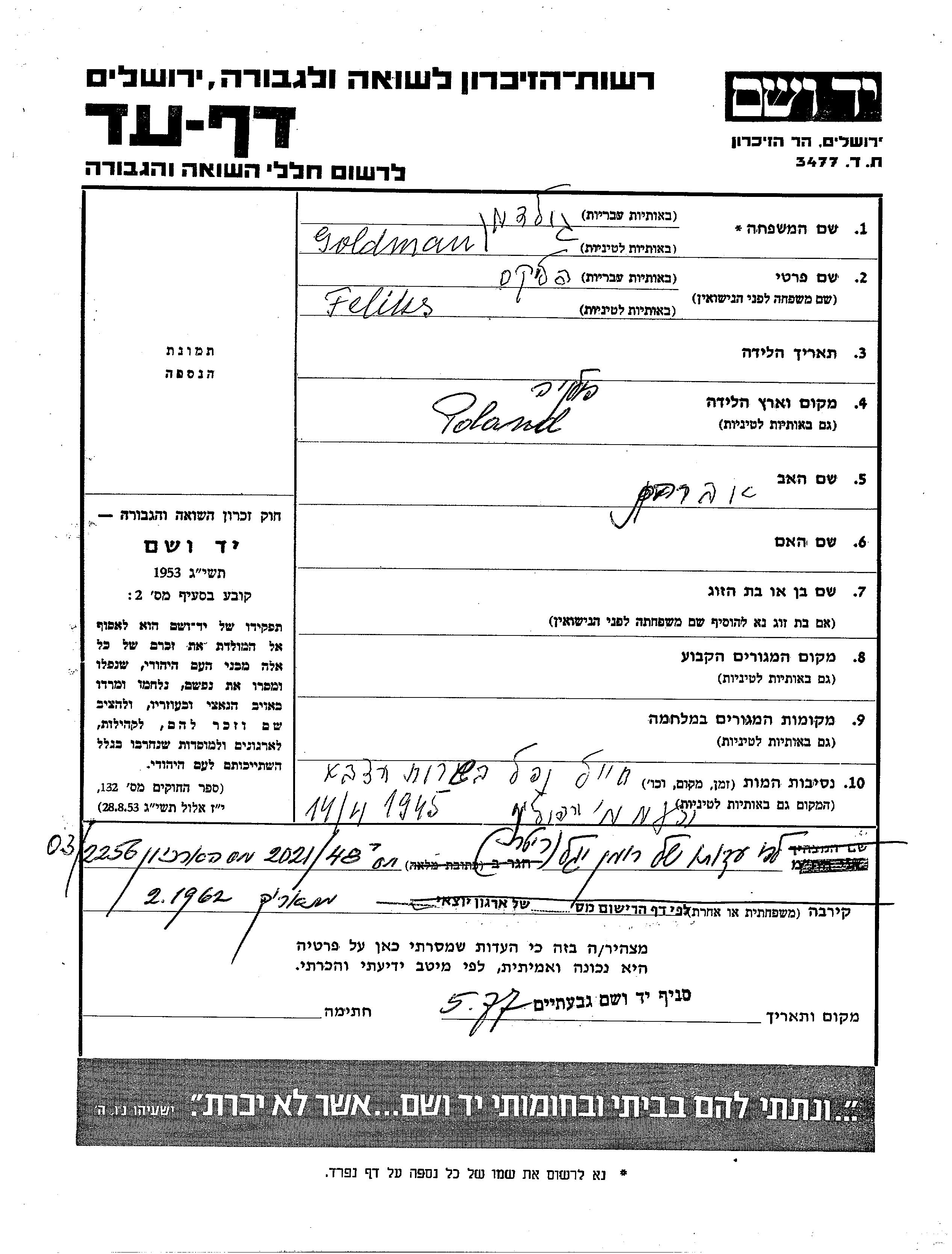 Yad Vashem - Pages of Testimony Names Memorial Collection