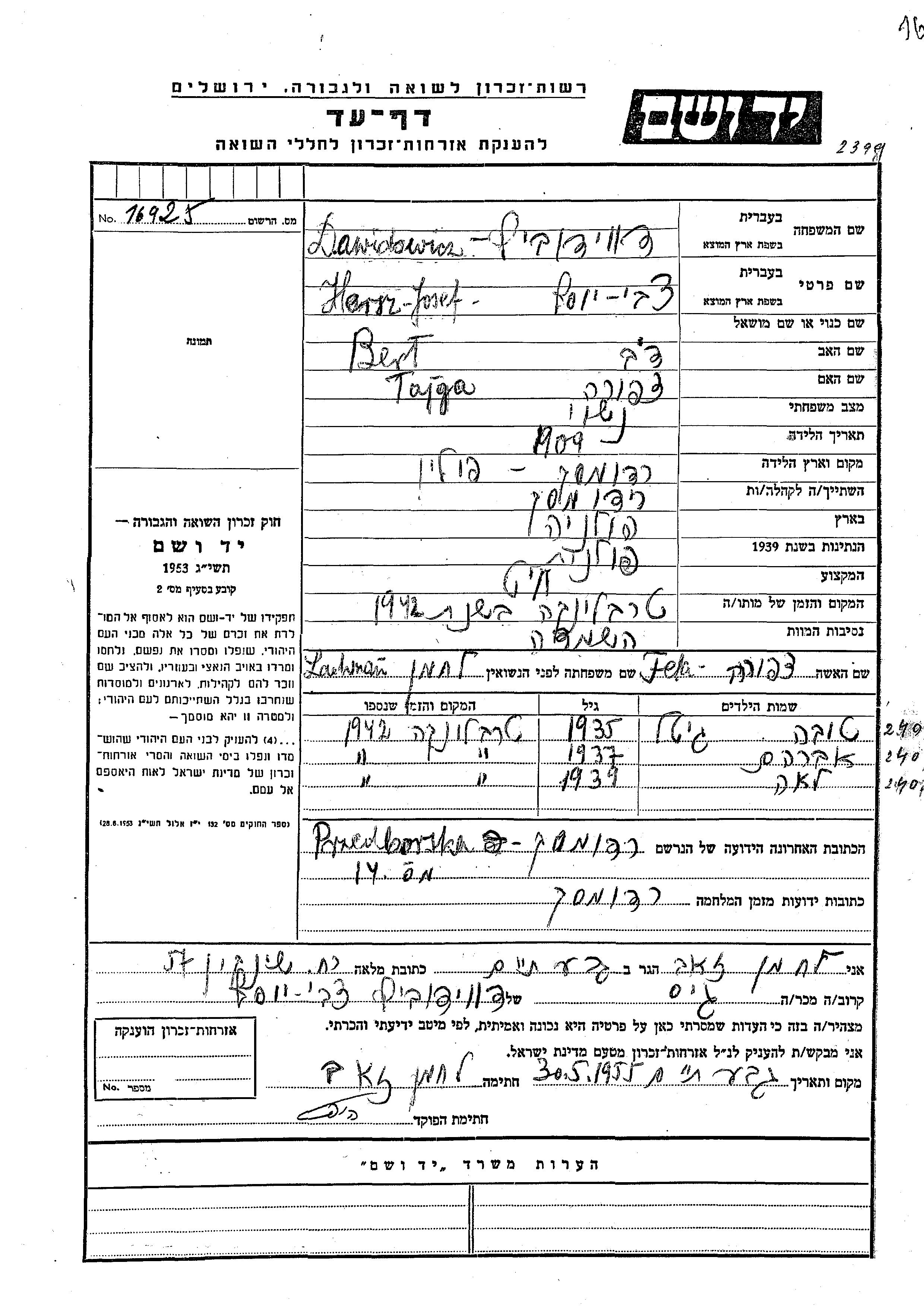 Yad Vashem - Pages of Testimony Names Memorial Collection