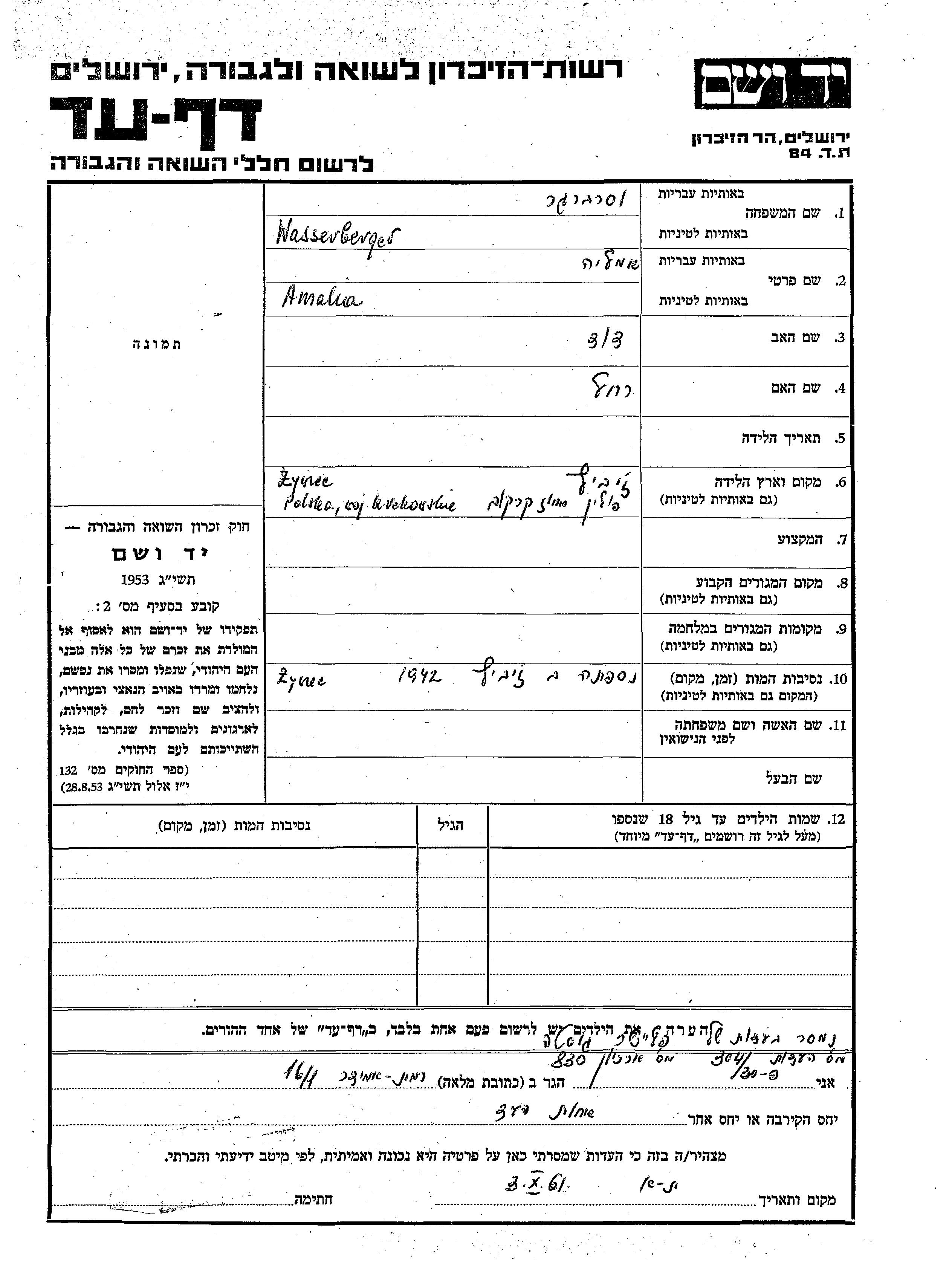 Yad Vashem - Pages of Testimony Names Memorial Collection