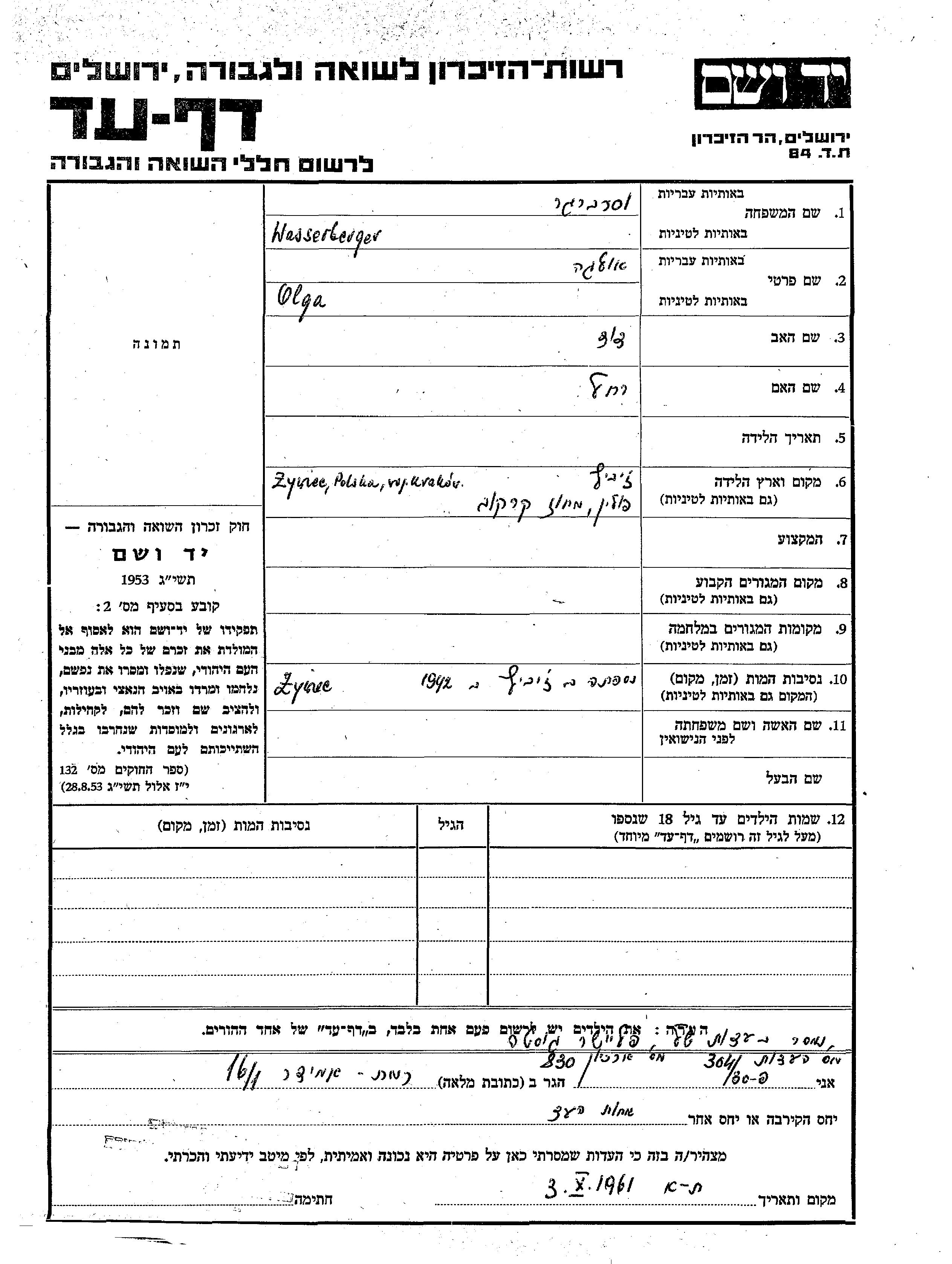 Yad Vashem - Pages of Testimony Names Memorial Collection