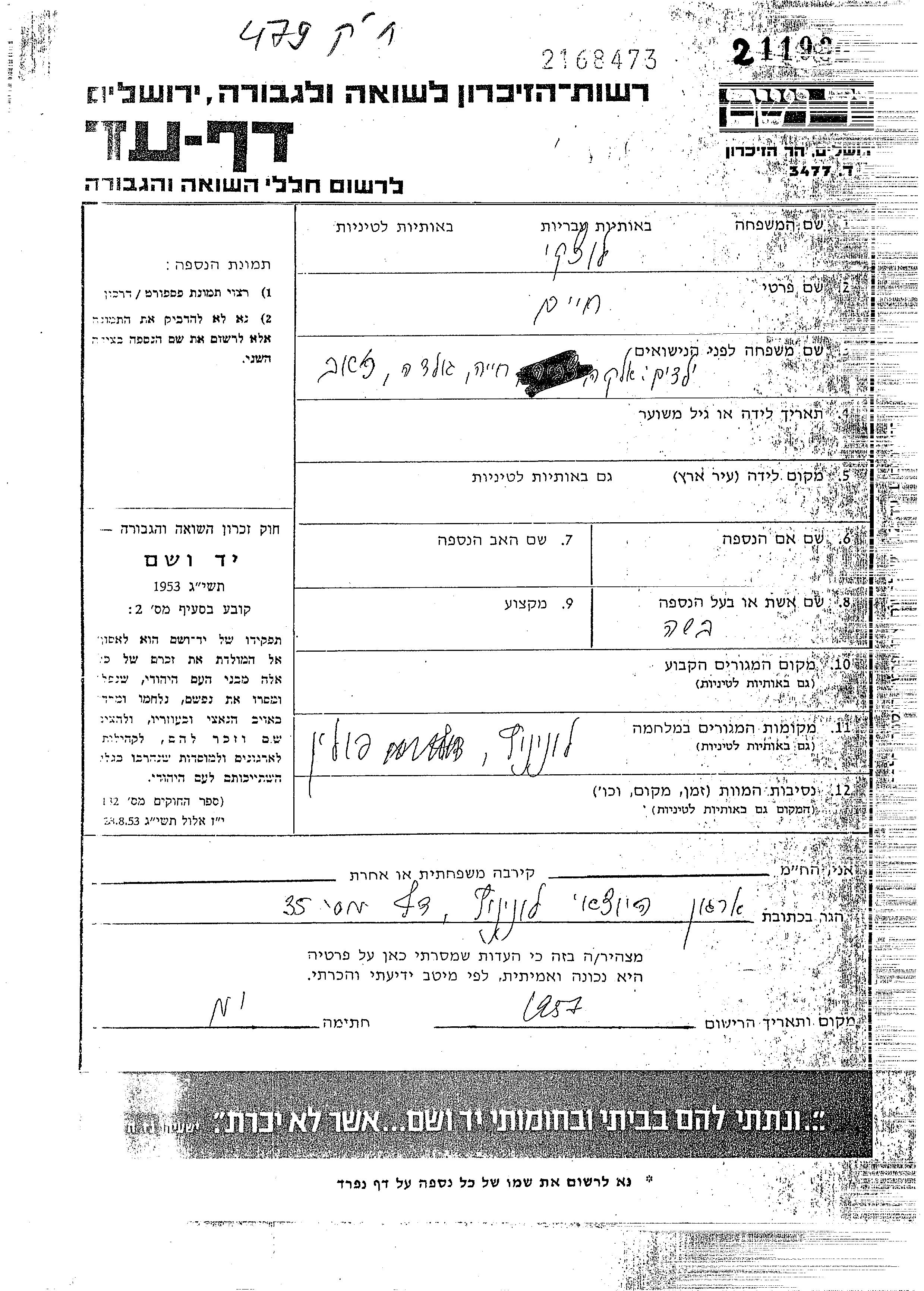 Yad Vashem - Pages of Testimony Names Memorial Collection