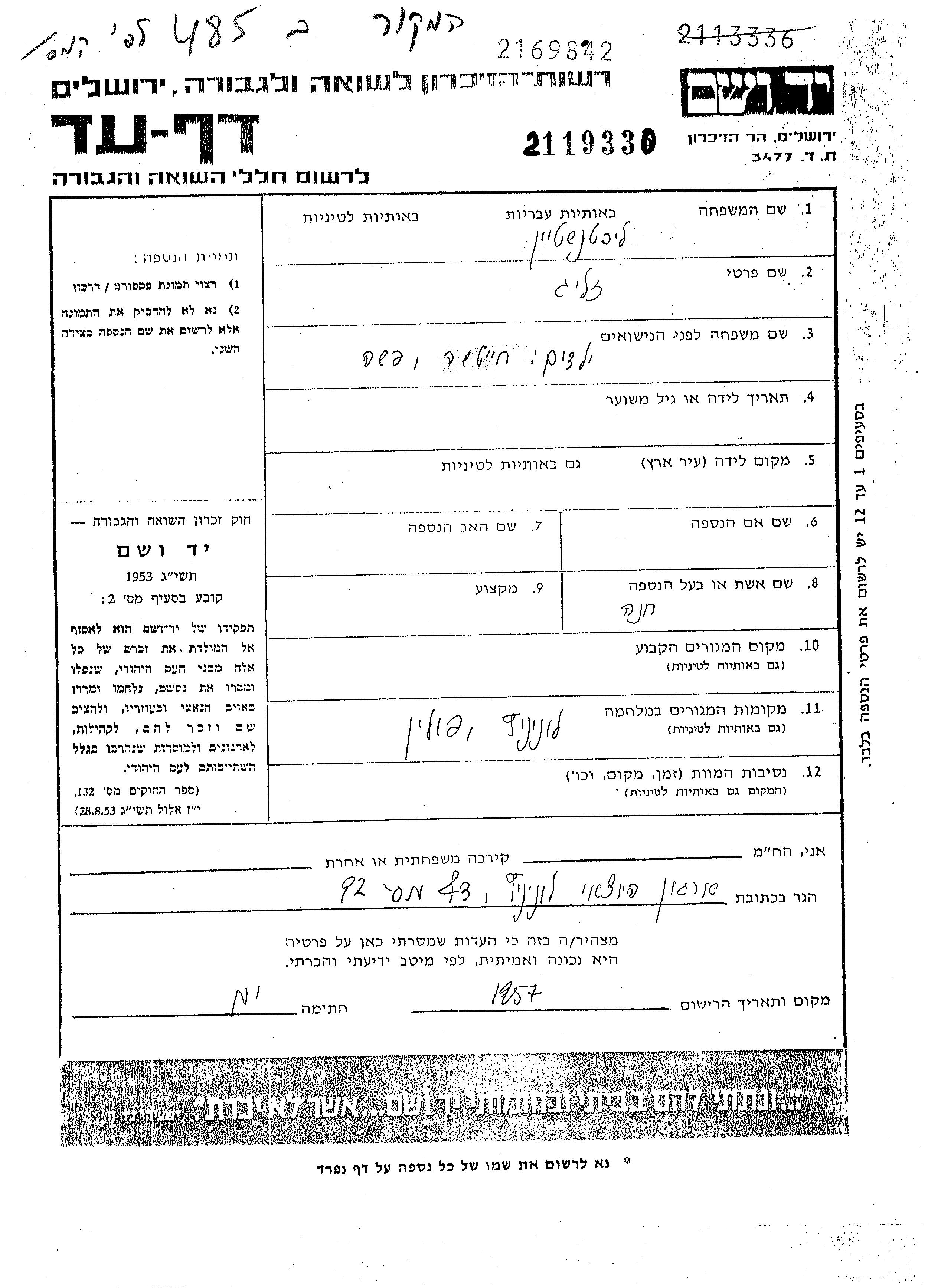 Yad Vashem - Pages of Testimony Names Memorial Collection